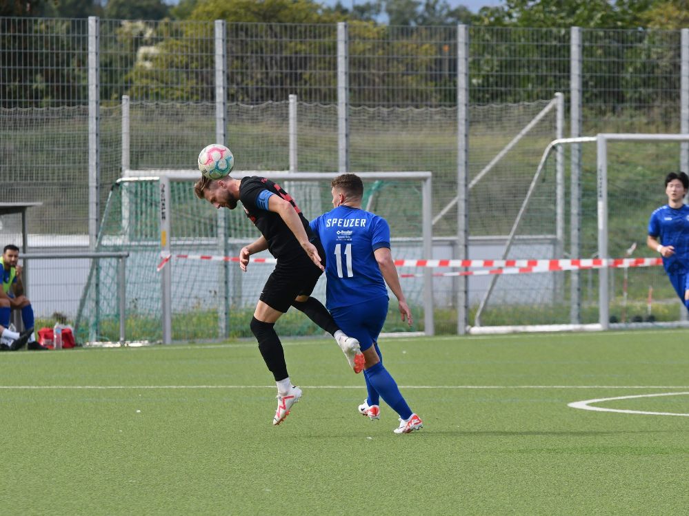 In der ersten Halbzeit ein müder Sommerkick, bei dem vor allen Dingen die favorisierten Gäste enttäuschten, die Speuzer hielten gut durch ihr aggressives Spiel dagegen, beide Mannschaften hatten jeweils eine Chance zur Führung. Doch dann kam die Nachspielzeit der ersten Hälfte, es gab einen Freistoß für die Darmstädter auf der linken Seite, der Ball wurde am hinteren Pfosten per Kopf in die Mitte befördert, der Kopfball des Darmstädters wurde von Torwart Timon Köhler pariert, ein Befreiungsschlag sprang von einem Darmstädter wieder hoch und aus 7 Metern konnte Noah Luca Wembacher per Kopf das 1:0 erzielen, eine glückliche Führung für die Darmstädter zu einem sehr unglücklichen Zeitpunkt für den FFV.