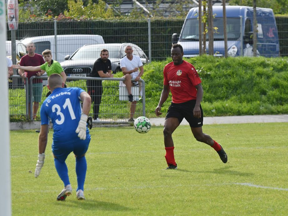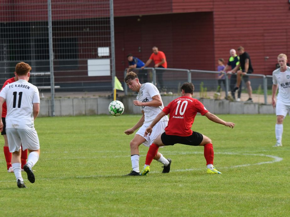 Die Bosnier kamen gut in die Partie und erzielten bereits in der 8.Minute durch Safet Mujkic das frühe 1:0, das der Mannschaft Sicherheit gab, die in der Startelf fünf angeschlagene Spieler zu verzeichnen hatte. Nachdem man weitere zwei gute Chancen u.a. durch Adis Hasecic ausgelassen hatte, kam man mit dem Pausenpfiff durch Secouba Diatta zur 2:0-Halbzeitführung. In der zweiten Halbzeit versuchte man dann, das Spiel zu verwalten und die Karbener waren nun am Drücker. Nachdem Topscorer Adis Hasecic angeschlagen ausgewechselt werden musste, erzielten die Karbener in der 63.Minute durch Florian Kurtz den Anschlusstreffer zum 1:2. Ein Freistoß für Karben prallte von der Mauer ab, den Nachschuss schoss Kurtz mit Hilfe des Innenpfostens ins Tor. Die Gäste hatten Blut geleckt und übernahmen noch mehr die Initiative, doch die Bosnier ließen nichts mehr anbrennen und spielten den Sieg souverän nach Hause. In der 90.Minute erhielt der Bosnier Hassan Quassini nach Beleidigung eines Gegenspielers die rote Karte.