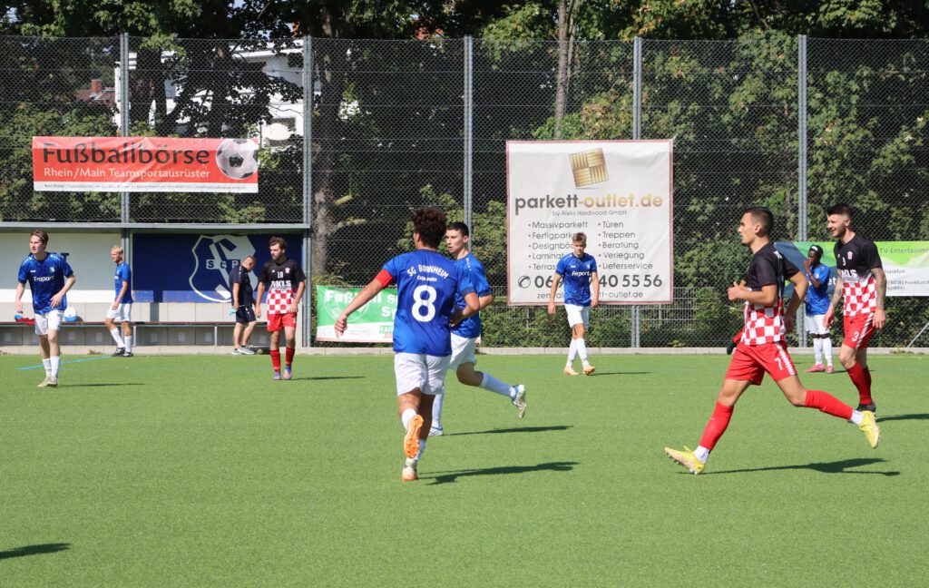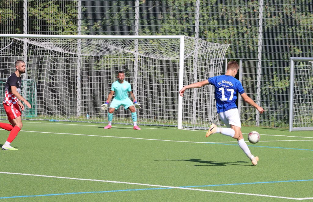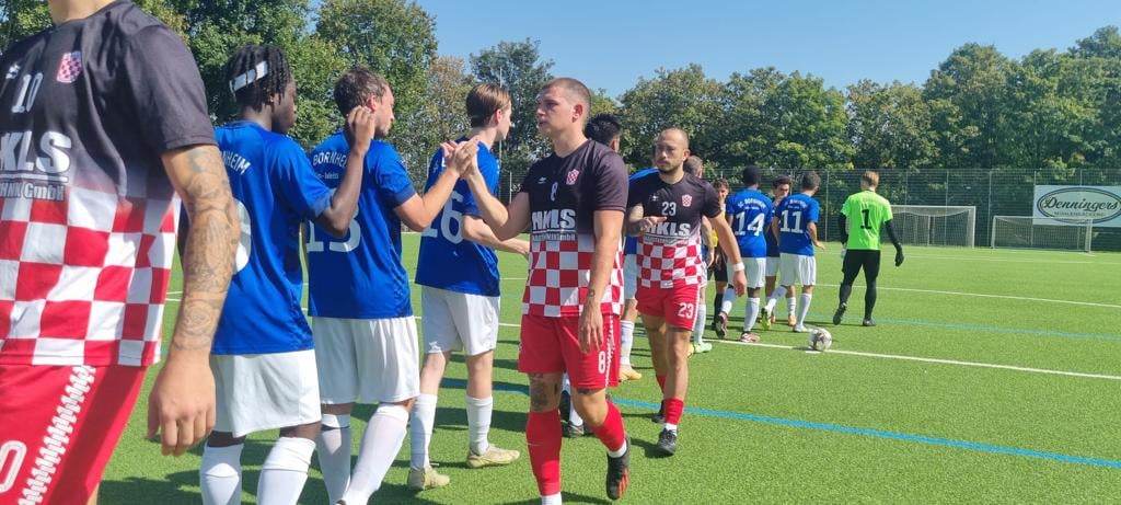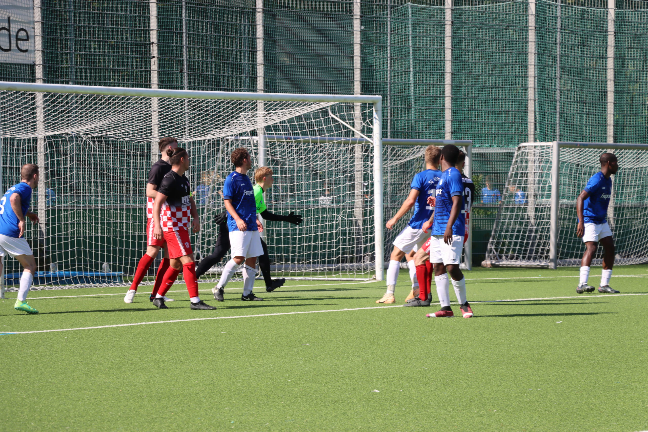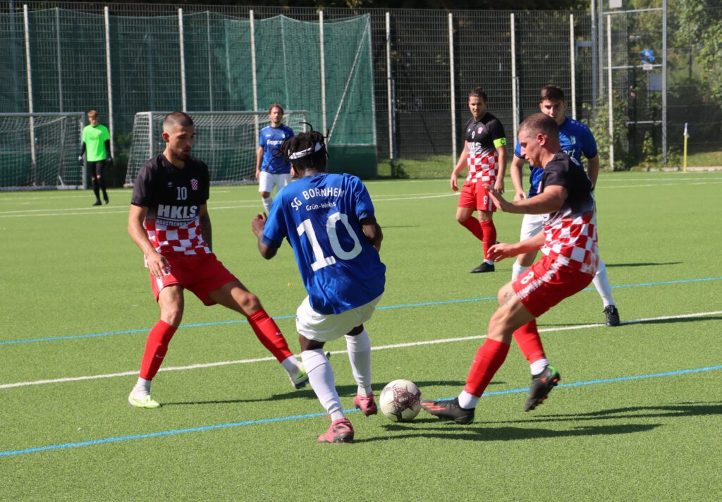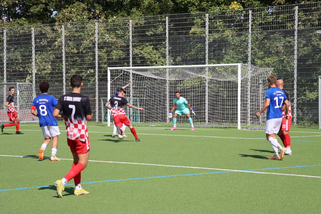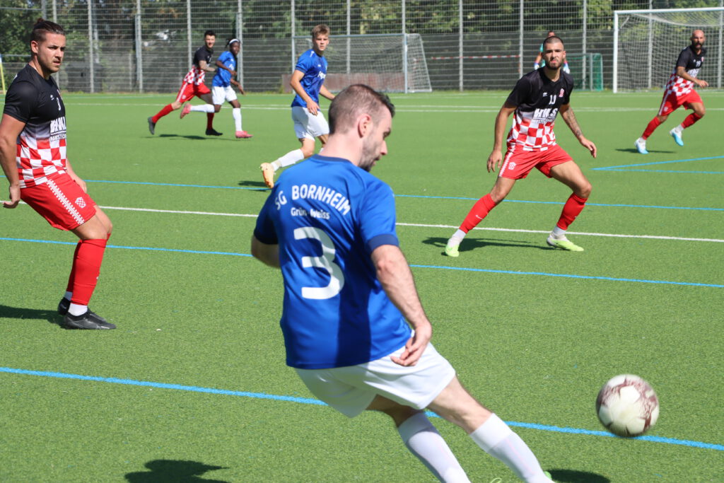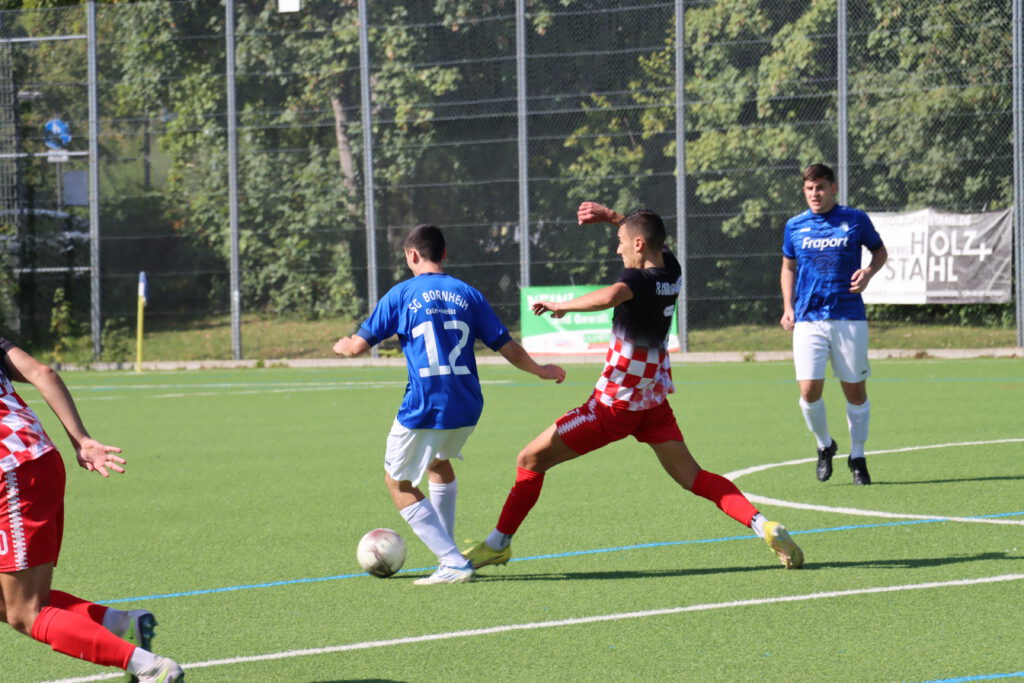 Bornheims Trainer Lucas Milbredt bewertete den Tabellenführer als „sehr erfahrene Mannschaft mit viel Qualität. Beiden Innenverteidigern hat man angesehen, dass sie früher oder vor kurzem noch sehr hoch gespielt haben. Sie agierten sehr kompakt und aggressiv und zweikampfstark. Da sind wir nicht so gut durchgekommen und sie haben aus vier Torschüssen in der ersten Halbzeit drei Tore gemacht.“ Nach einem Eckball verwertete Jackie Lee Reljic einen Rückpass zur Croatia-Führung (15.). Zwei Minuten danach unterlief dem Bornheimer Christopher Porzig ein Eigentor, nachdem Croatias Ante Coric einen langen Ball aus der Innenverteidigung aufgenommen hatte (17.).