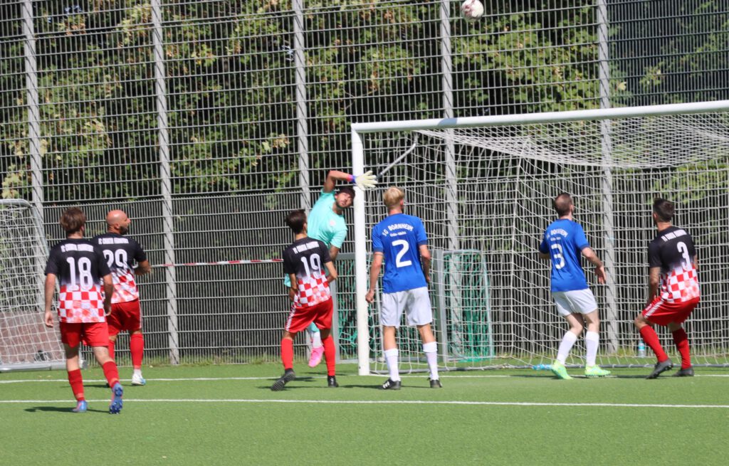 Einen Freistoß verwandelte Ante Strljic zum dritten Treffer der Gäste (36.). Die Gastgeber hatten danach eine hundertprozentige Torchance durch Jannis Schwarz, die er nicht nutzen konnte. „Wenn er den macht, wären wir mit dem 1:3 in die Halbzeit gegangen. So war es mit dem 0:3 schwierig rauszukommen. Wir haben es trotzdem versucht, aber es ist uns nicht viel gelungen. Croatia hat alles sehr erfahren verteidigt“, berichtete Milbredt. In der 73. Minute hätte es womöglich Elfmeter für Bornheim II geben können, der Schiedsrichter zeigte jedoch nicht auf den Punkt.