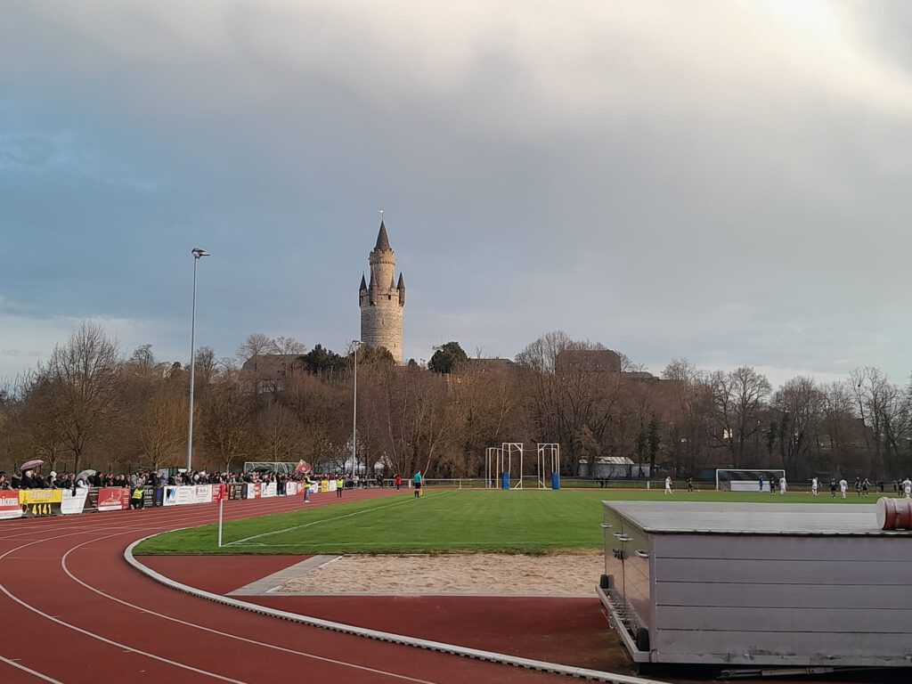 Diese Verstärkungen waren deutlich zu spüren und der Eintracht spielte die Führung durch Maximilian Brauburger auf Zuspiel von Marcel Wenig in die Karten (21.). Friedberg aber blieb bissig und unbequem. Per Foulelfmeter glichen die Gastgeber aus. Nachdem Eintracht-Innenverteidiger Ben-Luca Fisher in Noah Michel hereingerauscht war, zeigte Schiedsrichter Philipp Metzger zum Entsetzen der Frankfurter auf den Punkt. Toni Reljic verwandelte sicher zum 1:1 (33.). Ein Blitzstart nach der Pause brachte Türk Gücü Friedberg schon nach 20 Sekunden in Führung. Einen langen Ball hob Kamil Yikilmaz über Eintracht-Torwart Simon Simoni zum 2:1 ins Netz (46.). Die Frankfurter antworteten aber schnell. Loune steckte auf Wachs durch, der resolut ins rechte Eck traf (49.). Das Spiel nahm nun richtig an Fahrt auf, die Kulisse ging in der Abenddämmerung richtig mit. Ein kurioser Freistoß führte zum 3:2 der Hausherren. Reljic schoss zunächst in die Mauer, von wo der Ball vor dem herausstürzenden Simoni in die Luft stieg.