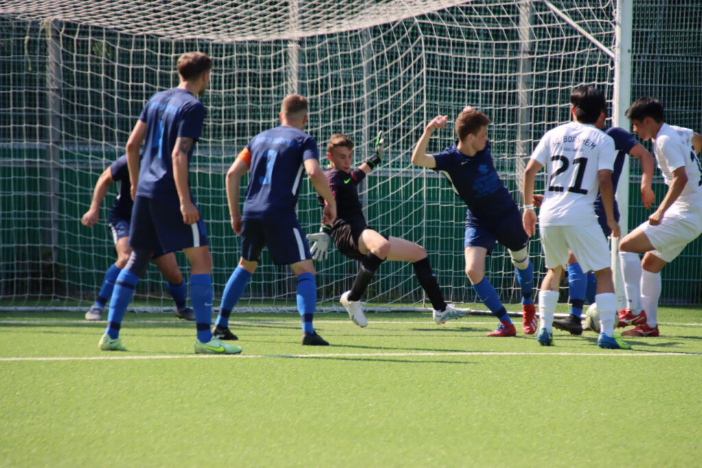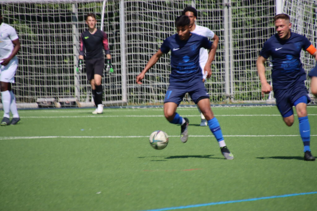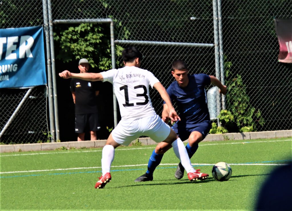 Mohamedelamin Camara (23.) und Teklu Tewelde (42.) erhöhten bis zur Pause auf 3:0. „Nach der Pause wollten wir das Spiel kontrollieren, da es nicht um das Torverhältnis geht“, verdeutlichte Volk. Das setzten die Bornheimer souverän um und konnten den A-Jugendlichen Timon Rosenkötter und Surosh Shahinda durch Einwechslungen noch Einsatzminuten gewähren.
