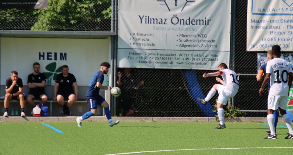„Es ging für uns nur darum zu gewinnen, damit im letzten Spiel in Bad Vilbel noch alles machbar ist“, deutete Bornheims Trainer Sascha Volk auf die Konstellation hin. Der Absteiger aus dem Kreis Dieburg war bemüht, auf dem Kunstrasenplatz mitzuspielen. Dennoch machte sich die fehlende Qualität bei den Gästen bemerkbar.