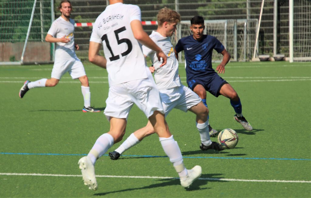 Routinier Niklas Troll, der seit der F-Jugend kontinuierlich bei den Bornheimern spielte und nie den Verein wechselte, brachte die Gastgeber in seinem letzten Ligaheimspiel in Führung (14.). Troll wechselt in die SOMA, bleibt dem Verein also weiter erhalten, wird aber nicht mehr für die Erste Mannschaft spielen.