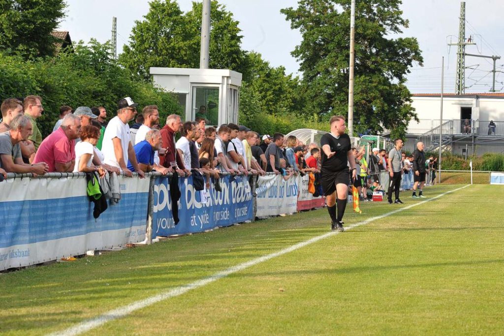 Letzte Saison spielte der FV noch gegen die Erste Mannschaft der Walldorfer in der Hessenliga. Jetzt geht es darum, die Zweitvertretung des Hessenligisten in zwei Spielen auszuschalten, um die Verbandsliga Süd doch noch zu halten. Bemerkenswert war die Kulisse, denn so viele Zuschauer hatte man am sonst meist spärlich besetzten Niddasportfeld auch in den letzten Hessenliga-Jahren nicht empfangen. Einer der es wissen musste, nämlich Pressesprecher Alexander Juli, bestätigte den Gedanken: „Es muss 2015 im Hessen-Pokal gegen den KSV Hessen Kassel gewesen sein, als rund 500 Zuschauer gekommen waren.“