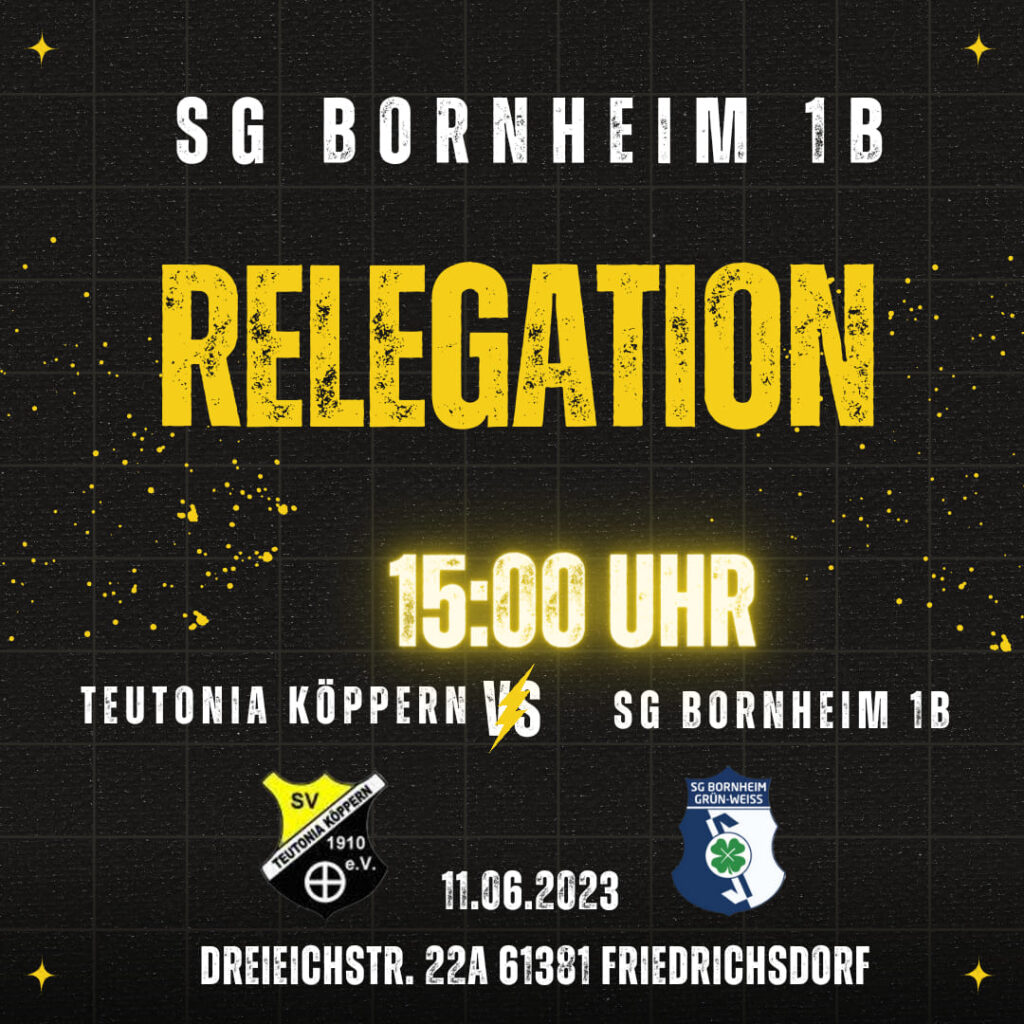 Aus dieser Dreierrunde steigt nur ein Verein auf, da in der übergeordneten Relegation der FC Neu-Anspach auf der Strecke geblieben ist. Bornheim II braucht im Heimspiel gegen den SV Gronau nun einen Sieg mit mindestens fünf Toren Differenz.