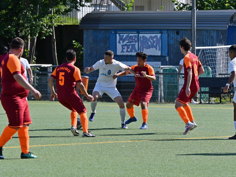 In der Nachspielzeit der ersten Hälfte erhöhte Simone Barbera für die Gäste (45./+3). Auch nach dem Seitenwechsel war Fechenheim II präsenter und erhöhte durch Joker Niklas Petermann (55.). Den Hausherren gelang dann durch Alparslan Önkal (64.) der Ehrentreffer. Barbera (75./79.) machte das halbe Dutzend voll (75./79.) und erhöhte die verheeerende Saz-Rock-Bilanz auf nun 272 Gegentore. „Wir sind jetzt durch und haben es verdient, über die Relegationsrunde aufzusteigen“, sagte Fechenheims Trainer Dennis Balzer. Der Aufstiegsjubel hielt sich jedoch nach dem Schlusspfiff in Grenzen.
