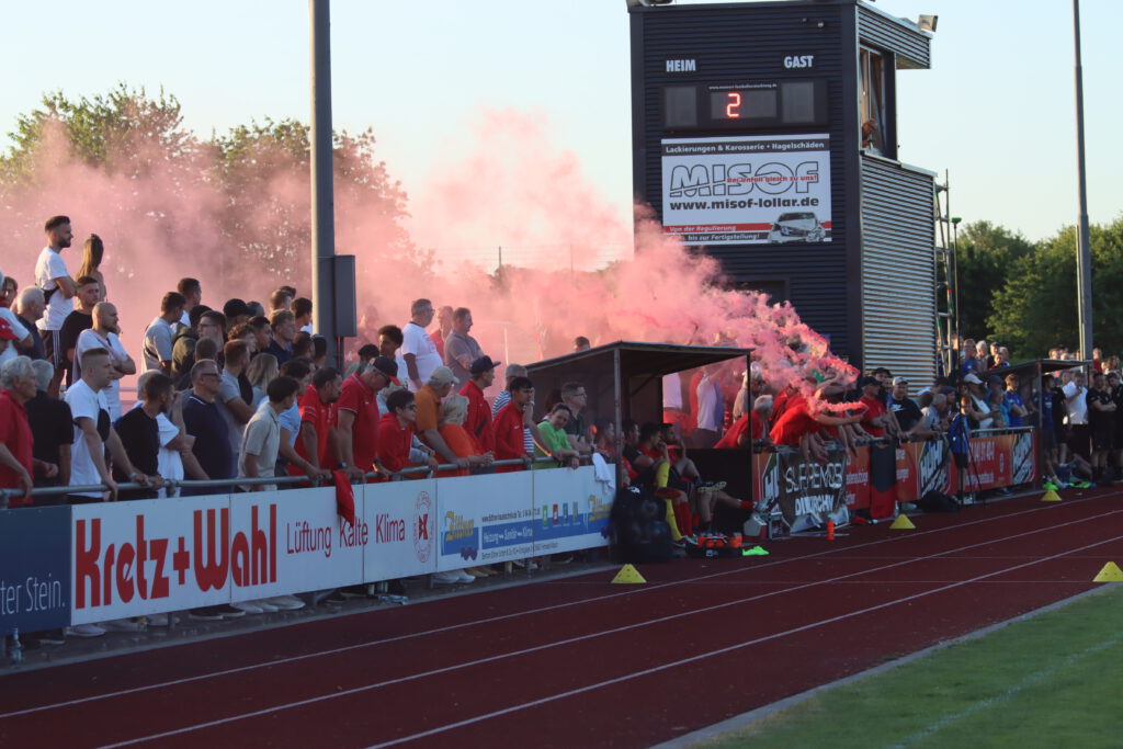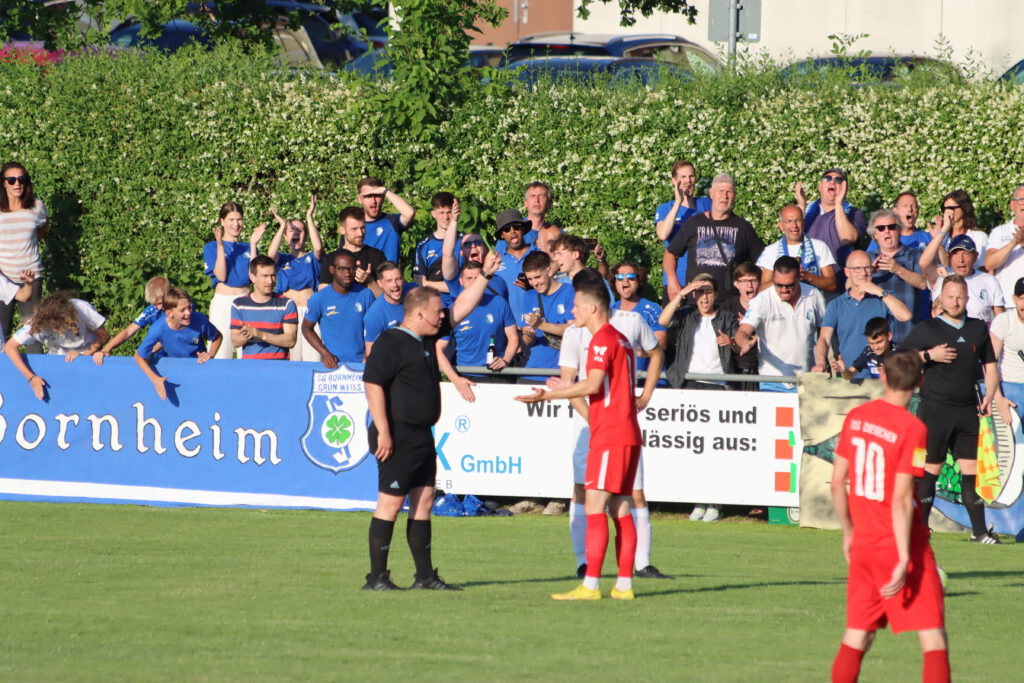 Einige Male mussten die Fangruppen vom Stadionsprecher dazu aufgefordert werden, das vom Verband nicht gern gesehene Abbrennen von Feuerwerkskörpern zu unterlassen. Insbesondere nach dem Bornheimer Führungstreffer brannte etwas mehr Rauch gen Himmel, sodass Schiedsrichter Steffen Rabe zur Bornheimer Bank lief und darum bat, einen Vereinsvertreter zu den euphorischen Anhängern zu schicken, um diese wieder zu beruhigen. Die hatten die Hessenliga bis zur vierten Minute der Nachspielzeit auch dicht vor Augen. Der Ausgleich der sich mit allen Mitteln gegen den Abstieg wehrenden Hessenligisten hatte sich in der Schlussphase der regulären Spielzeit aber abgezeichnet.