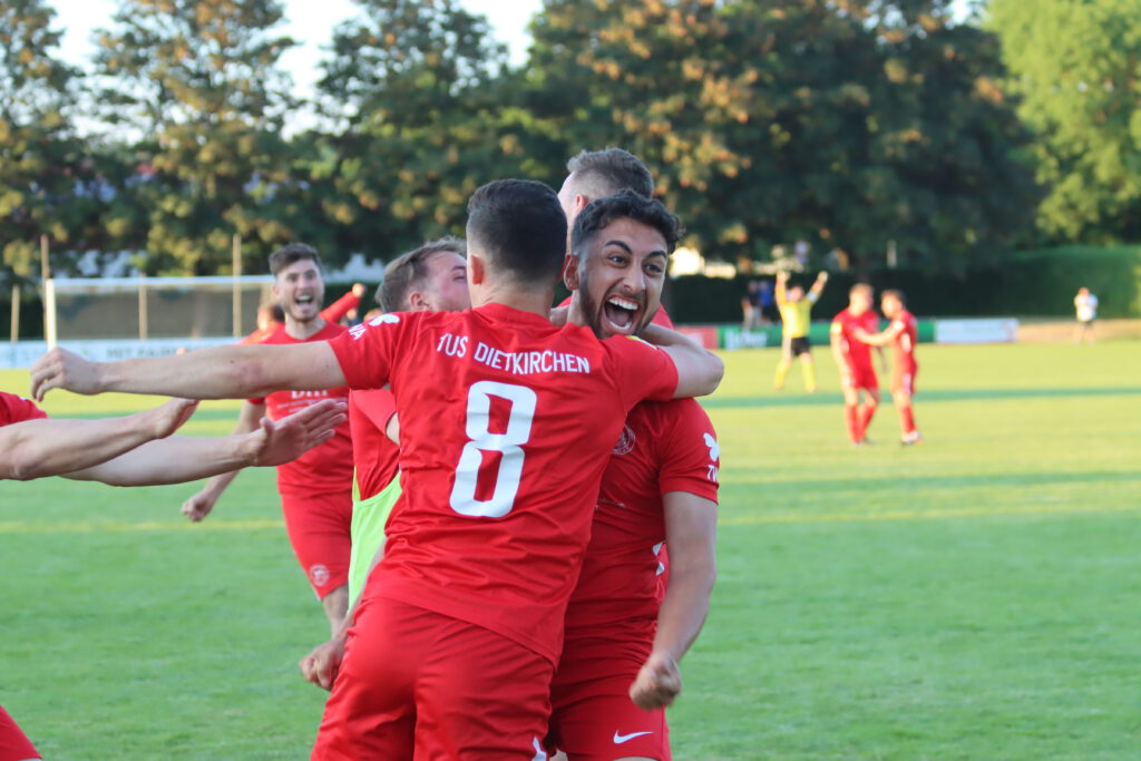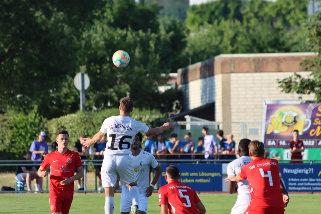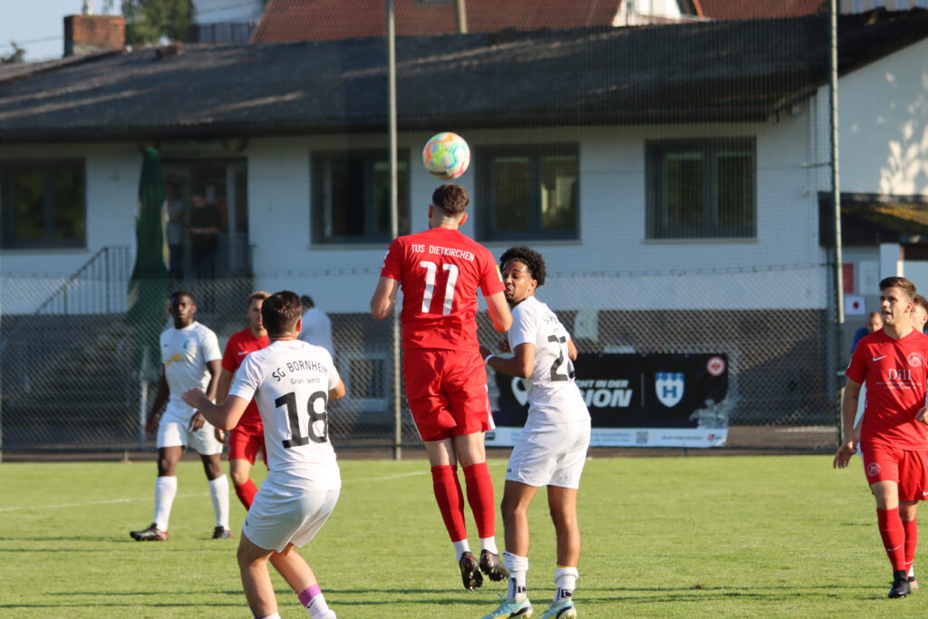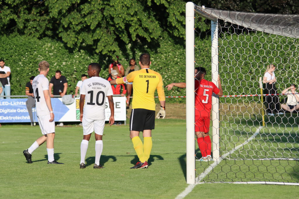 Kurz vor dem 1:1 hatte Zuckrigl bereits den Pfosten getroffen. Da befand sich längst TuS-Torhüter Raphael Laux im Bornheimer Sechzehner, musste dann aber schnell zurück eilen und hatte Glück, dass Raphael Gure aus der Ferne über das leere Tor schoss. Auch im Elfmeterschießen lag Bornheim vorne. In der anbrechenden Dunkelheit parierte zunächst Torhüter Gianluca Colombo gegen Zuckrigl. Dann aber schoss Bornheims Nick Wehrheim über den Kasten und Laux parierte gegen Sylver Kadrijaj. Am Ende verwandelte TuS-Keeper Laux und parierte gegen Ben Schwarz und der Bornheimer Aufstiegstraum war geplatzt. Minutenlang verharrten dann Bornheims Trainer Sascha Volk und seine Spieler vor den eigenen Anhängern in Schockstarre, sie konnten es einfach nicht fassen. Dietkirchen hat hingegen auch im vierten Jahr der Hessenliga-Zugehörigkeit den Kopf aus der Schlinge gezogen und ist nun nach dem Abstieg des Lokalrivalen Rot-Weiß Hadamar die Nummer eins im Kreis Limburg-Weilburg.