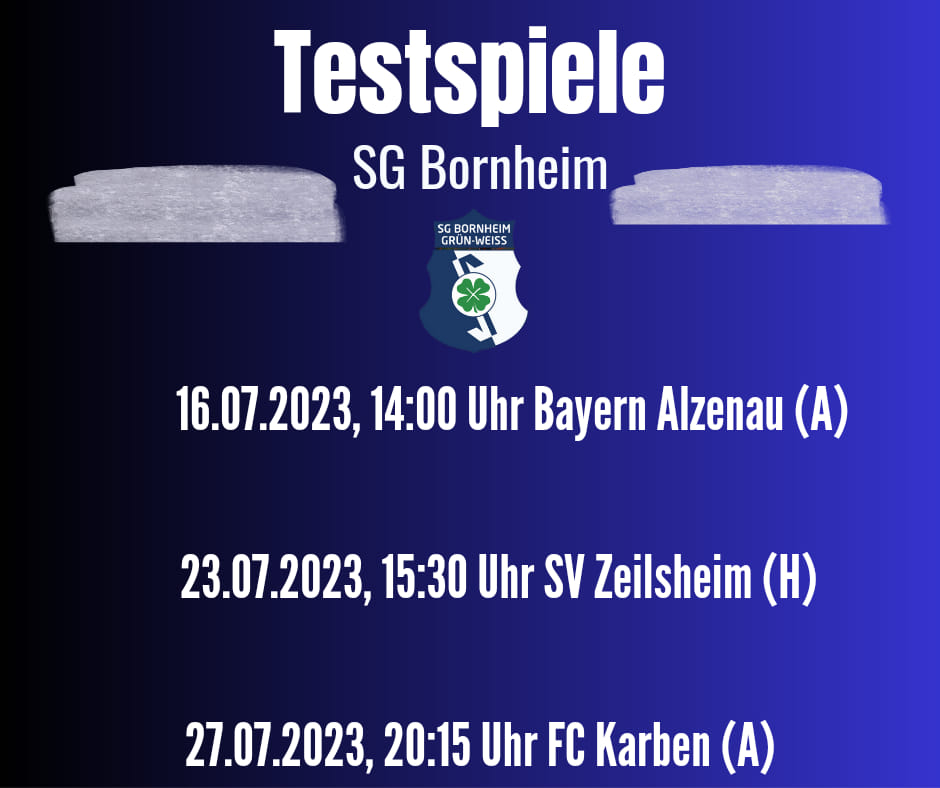 Nach der ersten regulären Trainingswoche steht der erste Test am Sonntag bei Hessenligist FC Bayern Alzenau auf dem Programm. Eine Woche danach kommt Verbandsliga Mitte-Vertreter SV Zeilsheim nach „Bernem“ und am 27. Juli ist die SGB beim Gruppenligisten FC Karben zu Gast (siehe Grafik oben).
