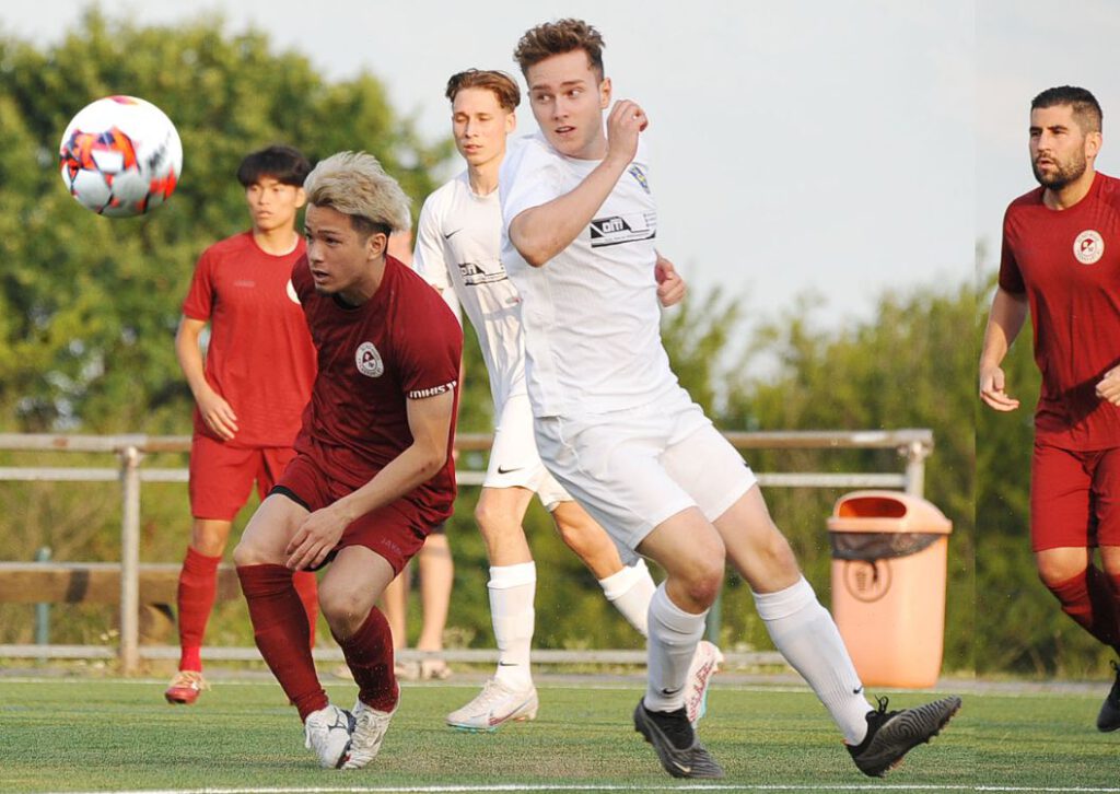 Beruflich verhindert fehlte Torjäger Varol Akgöz. Von Beginn an war eine klare Spielidee auf Seiten der Gäste zu erkennen. Schnell wurde bei Balleroberungen umgeschaltet und die Angriffe über die Außenbahnen, meist über den schnellen Ryunoske Aso, eingeleitet. Die Führung entsprang aus einer Ablage von Belmin Müller auf den reaktivierten Emanuel Mbaka Lodama, der zum ersten Treffer einschob (13.). Die Hausherren wurden unterdessen von ihrem lautstarken Trainer Andreas Klöckner nach vorne getrieben.