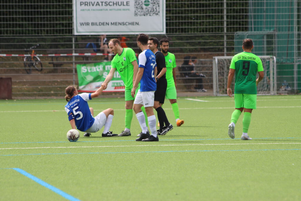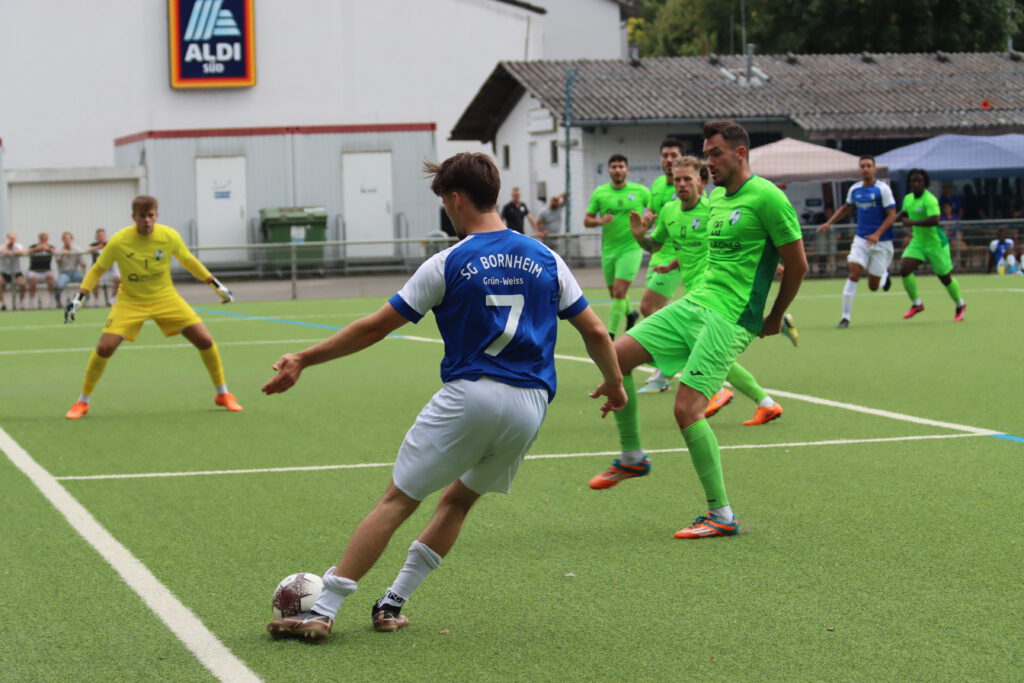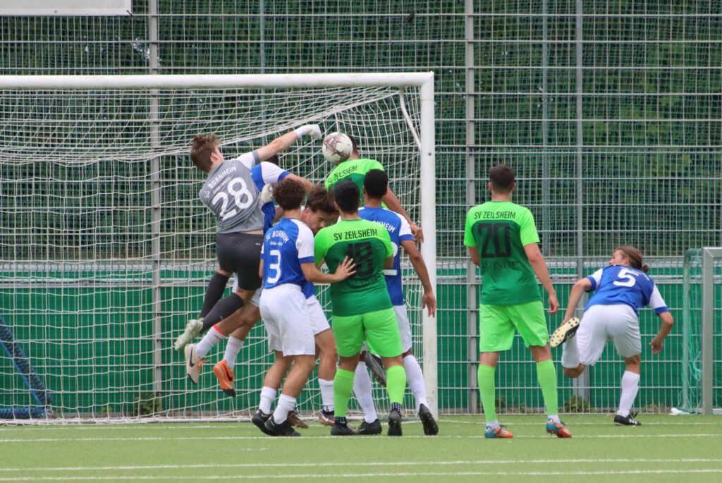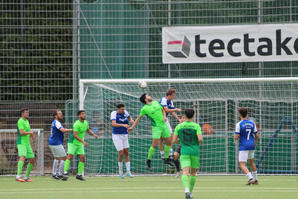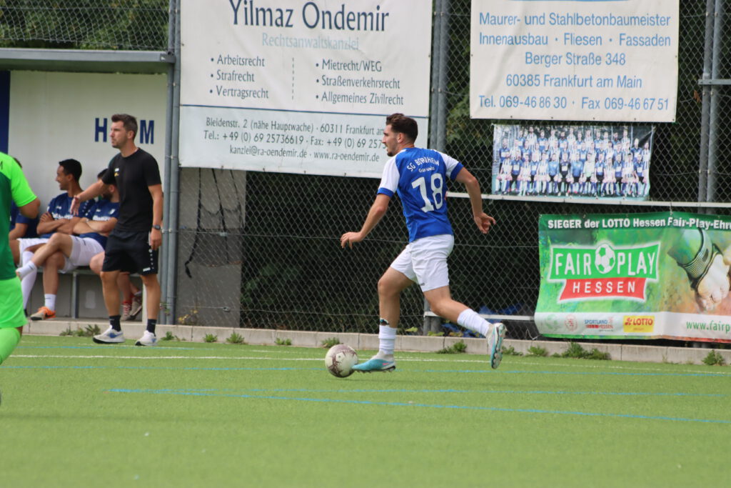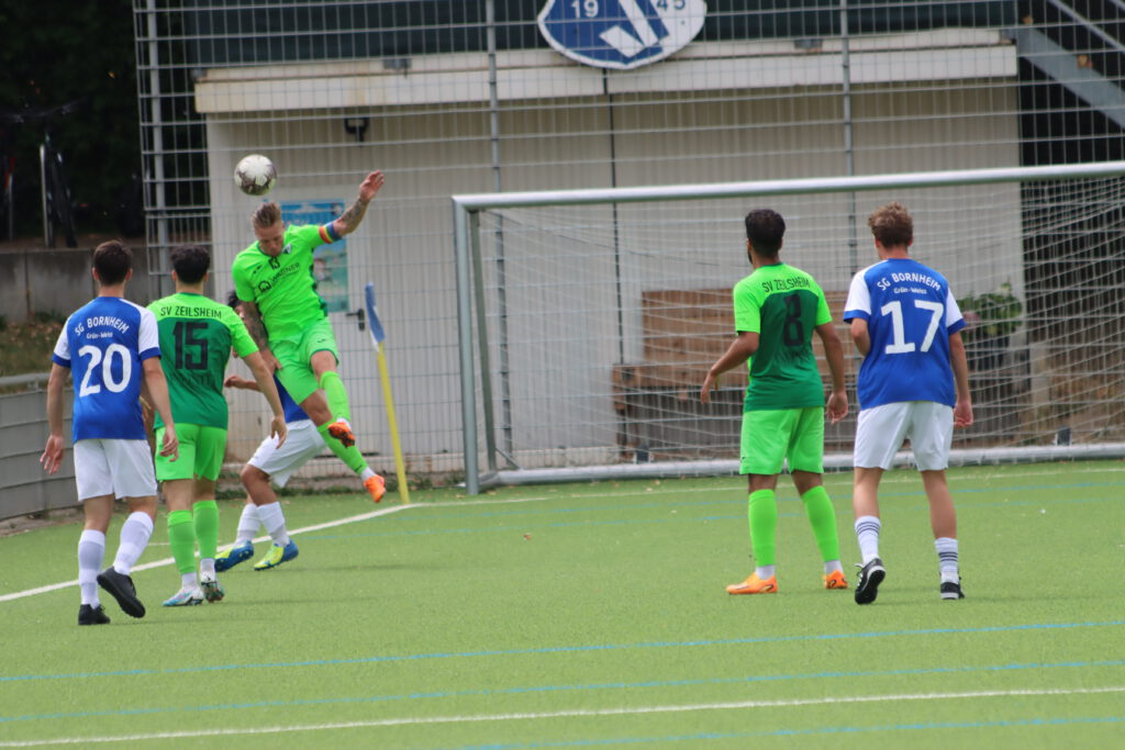 Die Zeilsheimer haben sich mit einigen erfahrenen Akteuren vom Hessenligisten Rot-Weiß Walldorf verstärkt. Einer dieser Spieler, Laurin Vogt, brachte die Gäste zu Beginn schon in Führung (2.). Nach dem 1:1 durch Mohemedelamin Camara (27.) unterlief Vogt nach einem Freistoß von Mahmut Afsar ein Eigentor zur Bornheimer Führung (32.). Seinen Fehler machte Vogt dann aber mit dem Ausgleich wieder gut (39.).