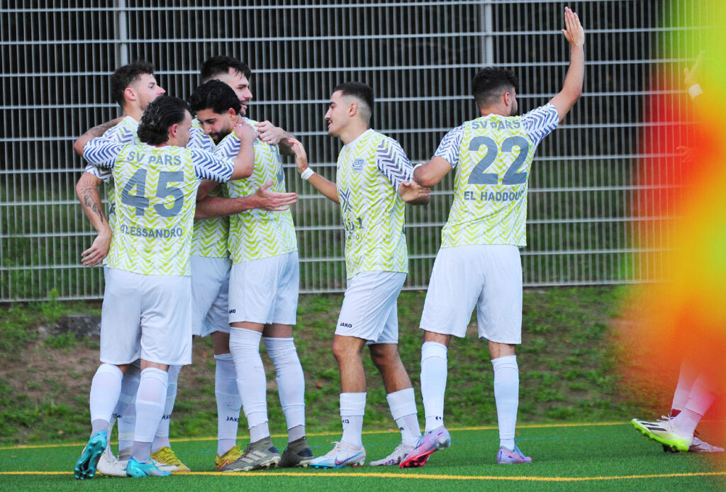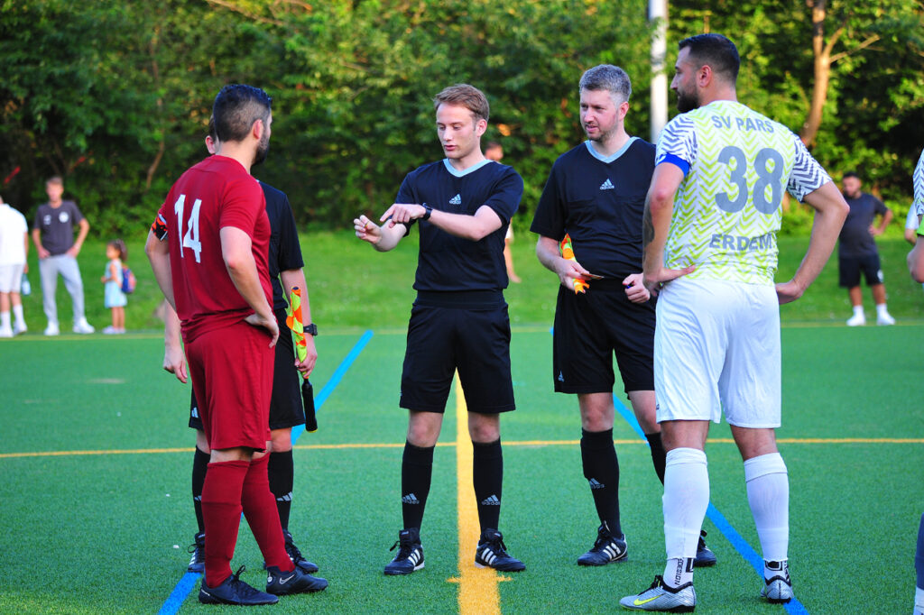 Der SV Pars kam sehr viel schneller ins Spiel, ein Pass in die Mitte ließ ein Spieler durch und Leon Burggraf stand in der 4.Minute allein vor dem Tor und schloss den Angriff mit einem satten Schuss zum 1:0 für die Gastgeber ab. Im Gegenzug landete ein langer Pass bei Sora Osawa, der Torwart von Pars, Nemanja Saula, kam rechtzeitig aus dem Tor und konnte so klären. Der SV Pars versuchte immer wieder mit langen Bällen hinter die Abwehr zum Erfolg zu kommen, besonders über rechts und den schnellen Sinisa Alempic wurden viele Angriffe vorgetragen. Die Gastgeber kamen zu weiteren Chancen durch Leon Burggraf (15,), Florijon Belegu (21.), Denis Streker (35.) und Leon Burggraf (40.), aber allesamt scheiterten sie am Torwart Bennet Karrer oder verfehlten das Tor knapp. In der 33.Minute mussten die Rot-Weissen das erste Mal verletzungsbedingt wechseln.