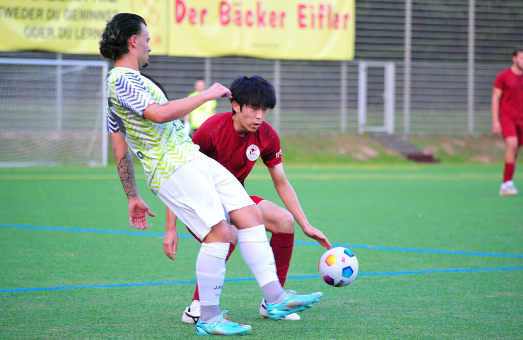 In der zweiten Halbzeit kamen die Frankfurter etwas bissiger aus der Kabine und pressten die Isenburger schon weit in deren eigenen Hälfte, die erste Chance hatten allerdings wieder die Gastgeber, als nach einem Doppelpass Florijon Belegu aus spitzem Winkel aufs Tor schoss, aber am gut reagierenden Bennet Karrer scheiterte. Die Rot-Weissen spielten besser mit, aber der letzte Pass in die Spitze fehlte meist. So kamen weiterhin die Neu-isenburger zu klareren Chancen, in der 54.Minute nahm Leon Burggraf eine Flanke mit der Brust an, scheiterte dann aber mit seinem Schuss am rechten Pfosten. Nachdem die Rot-Weissen bereits fünfmal gewechselt hatten, verletzte sich ein weiterer Spieler, und so mussten die Frankfurter ab der 77.Minute das Spiel zu zehnt beenden. Das nutzte der SV Pars gleich aus, nach einem Sololauf auf der rechten Seite, bei dem Sinisa Alempic drei Gegenspieler stehen ließ, passte er in die Mitte, wo Nahom Ogbay den Ball bekam und ihn mit Hilfe der Unterkante der Latte im Tor versenkte (78.).