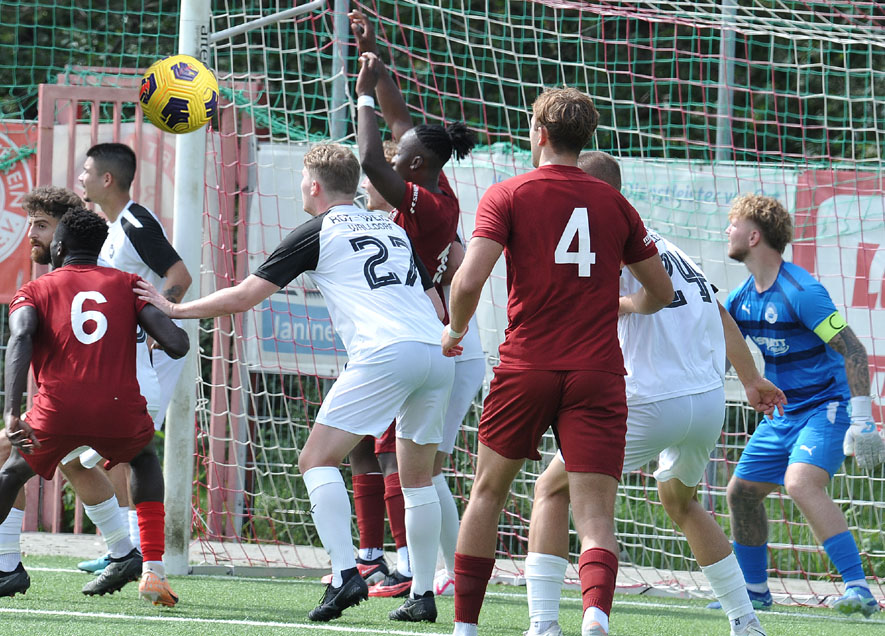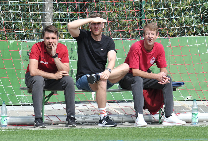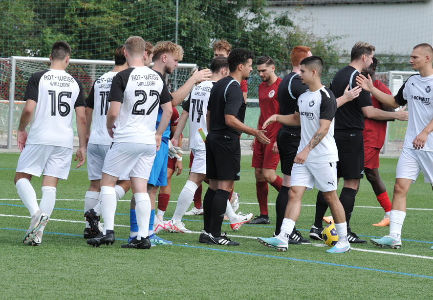 Die Rot-Weissen aus Frankfurt kamen gut ins Spiel und erspielten sich auch ein paar Torchancen, ließen aber im Abschluss wie schon zuletzt die Kaltschnäuzigkeit vermissen. Die Gastgeber aus Walldorf nutzten ihre ersten zwei Gelegenheiten, bei denen Frankfurts Torwart Bennet Karrer unglücklich aussah, zu einer frühen 2:0-Führung. Mit einem Doppelpack von Jean Michael Mönke in der 22.Minute und Tewen Spamer in der 24.Minute trafen sie die Gäste ins Mark. Und nur vier Minuten später erzielte Kento Nakamura sogar das 3:0. Gästetrainer Benjamin Löbert versuchte dann bereits in der 31.Minute mit zwei frühen Wechseln, bis zur Halbzeitpause noch den Anschlusstreffer zu erzielen, dabei kam erstmals auch Neuzugang Raymond Williams zum Einsatz, doch es blieb bis zur Pause beim 3:0.