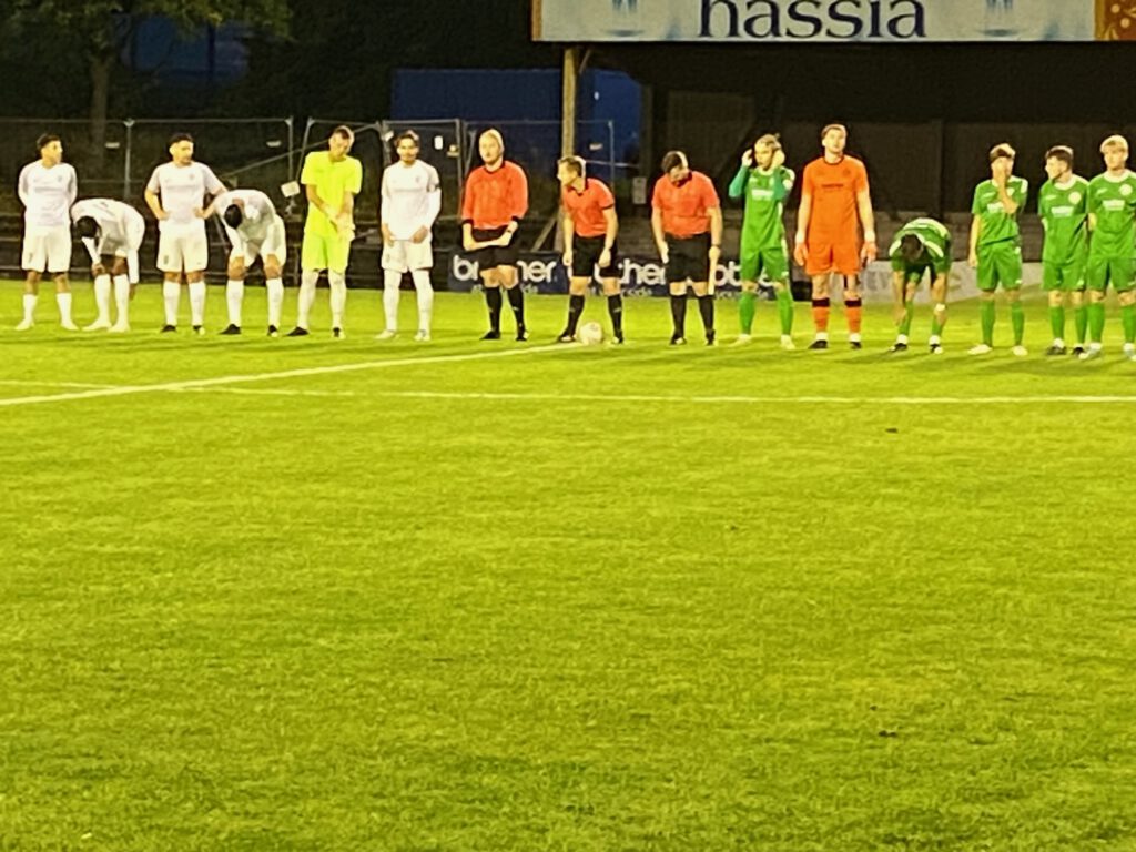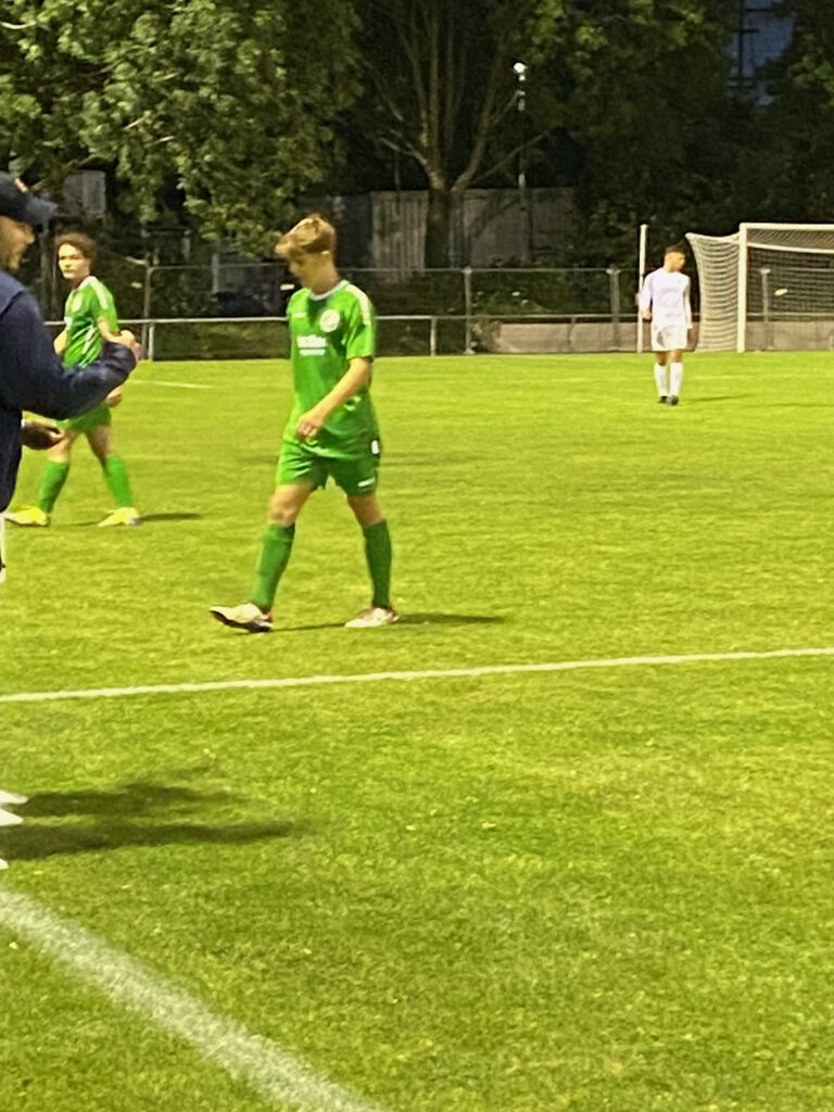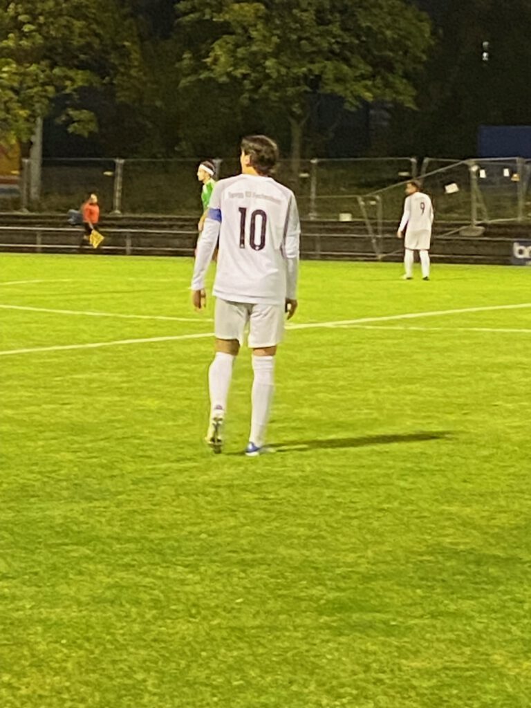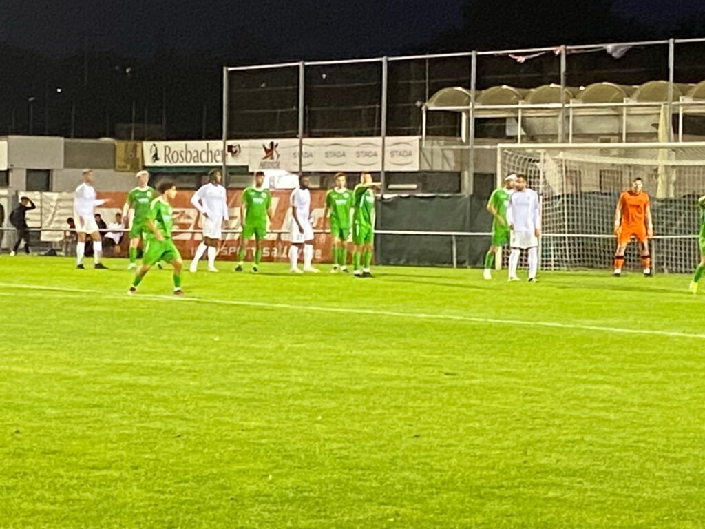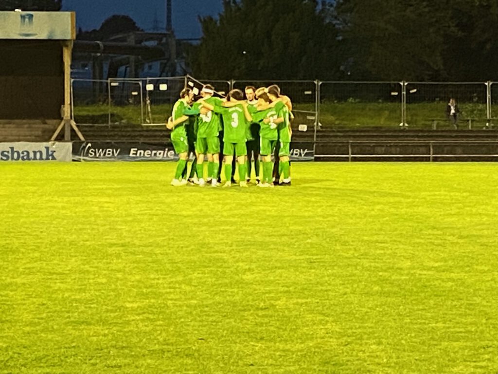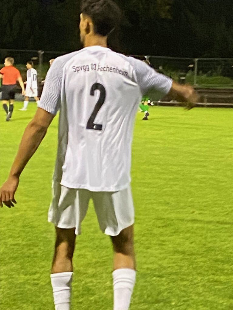 Freitag Abend, beste Bedingungen für ein Spiel; das Flutlicht ist eingeschaltet, knapp 20 Grad und ein frisch gemähter Rasen luden ein zum Spiel der Tabellennachbarn FV Bad Vilbel (15.) und der Spvgg. Fechenheim (14.). Schon in der ersten Viertelstunde merkte man den Gästen an, dass sie durch die zwei vorangegangenen Siege viel Selbstvertrauen getankt hatten. Und so fiel das 1.0 für Fechenheim auch folgerichtig bereits in der 12.Minute, Kapitän Ouassim Ouass setze sich auf der rechten Seite gut durch und flankte in die Mitte, wo Roberto Martins Pereira den Ball annahm, sich um seine eigene Achse drehte und zur Führung der Gäste in das Netz wuchtete. Die Gastgeber mussten in der 19.Minute bereits zum zweiten Mal verletzungsbedingt wechseln. In der 1.Minute verletzte sich bereits Fynn Malte Hellwig, versuchte es noch einmal, wurde dann aber in der 8.Minute durch Ilias Firisse ersetzt, und in der 19.Minute kam Danilo Pantic für den angeschlagenen Mert Kabakci. Die Spvgg. spielte weiterhin aufmerksamen Fußball und kam in der 43.Minute zum 2:0, als Mohamed Youssef nach einem Steilpass frei vor dem Tor zum Schuss kam und in die kurze Ecke einschoss. Zwar hatte Bad Vilbel ab der 30.Minute etwas mehr Spielanteile, konnte aber keine großen Chancen herausspielen. Glücklich für die Gastgeber dann doch noch der Anschlusstreffer in der Nachspielzeit der ersten Hälfte, nach einem Getümmel im Fechenheimer Strafraum erzielte im dritten Versuch Taiki Keda den 1.2-Halbzeitstand (45.+3).