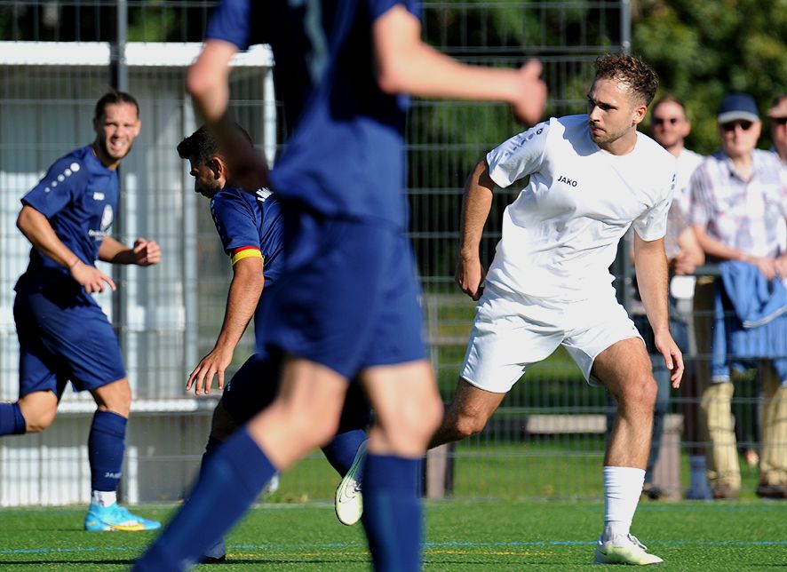 Erstmals seit der Saison 2016/17 trafen die beiden Nachbarn in einem Pflichtspiel aufeinander. Die letzten Jahre hatte man aber einen intensiven Kontakt gepflegt und regelmäßig Freundschaftsspiele vereinbart. Bei bestem Spätsommerwetter wurden diesmal 13 Tore serviert. „Wenn man zu Hause fünf Tore schießt, sollte man das Spiel eigentlich gewinnen, doch acht Gegentore zeugen für eine absolut löchrige Abwehr“, beschrieb RFC-Pressesprecher Volker Flauaus das Dilemma in seinem Spielbericht. „Fast jeder Angriff des Gegners brachte Gefahr, im Eins gegen Eins hatte man oft das Nachsehen und lange Bälle über die oft auf einer Linie stehenden Abwehrreihe verbreiteten Angst und Schrecken. Hätte Gianni Gioia nicht schon in der ersten Halbzeit wieder hervorragend gehalten, dann wäre die Niederlage zweistellig ausgefallen“, präzisierte Flauaus.