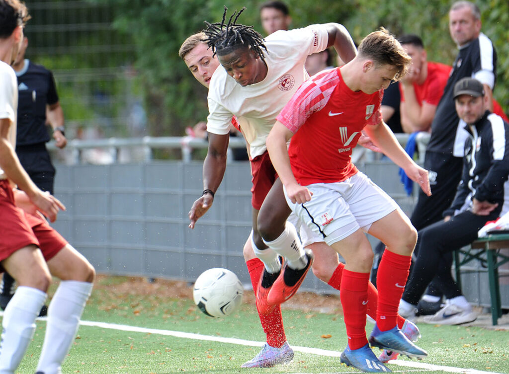 Nach dem erfolgreichen Gastspiel bei der DJK Spfr. Bad Homburg am Mittwoch gingen die Rot-Weissen selbstbewusst in die Partie und übernahmen gegen die TS-Ober-Roden auch gleich die Spielkontrolle. Die ersten 20 Minuten zeigten die Frankfurter eine gute Partie und gingen in der 16.Minute durch ein Tor von Nana Michel Tentchou auch folgerichtig mit 1:0 in Führung. Aber ab der 20.Minute gab es einen Bruch im Spiel der Hausherren und die Mannschaft wirkte nach den Worten von RW’s Sportlichem Leiter Marcus Hegedüsch „platt“, möglicherweise ein konditionelles Problem nach dem schweren Mittwoch-Spiel. Die TS Ober-Roden war fortan die bessere Mannschaft, ohne sich bis zur Halbzeit große Chancen herauszuspielen.