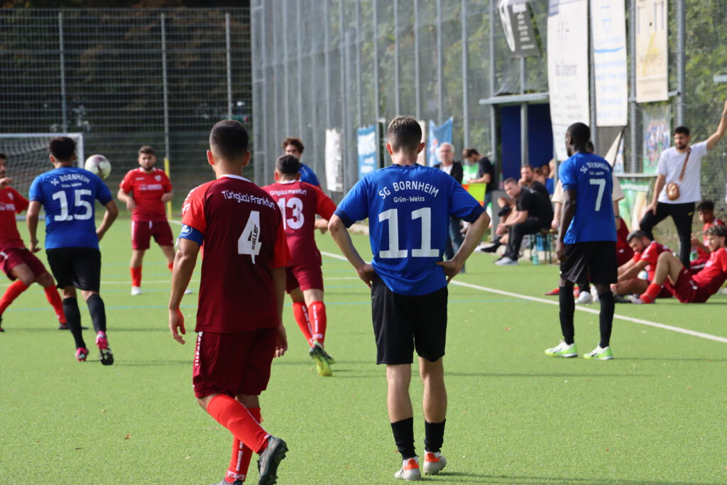 „Natürlich ein absolut enttäuschendes Ergebnis, zu Hause mit 0:4 zu verlieren“, konstatierte Lucas Milbredt aus dem Bornheimer Trainerteam. In der ausgeglichenen ersten Halbzeit kassierten die Hausherren den ersten Gegentreffer zum ungünstigstem Zeitpunkt kurz vor der Halbzeit. Mit einem „Traumschuss“ aus 25 Metern in den Winkel brachte Ali Üzer die Gäste nach vorne (43.). „Den trifft er perfekt, aber für uns war das natürlich schlecht, mit so einem späten Gegentor in die Halbzeit zu gehen“, berichtete Milbredt. Die zehn Minuten nach dem Seitenwechsel bezeichnete der SGB-Coach als „Totalausfall in der Defensive. Wir verursachten auch einen Elfmeter, der berechtigt war“, fuhr Milbredt fort. Den an Nuno Miguel Pires Lopes verursachten Strafstoß verwandelte Emre Kadimli mit Hilfe eines Pfostens zum 2:0 für Türkgücü (50.).
