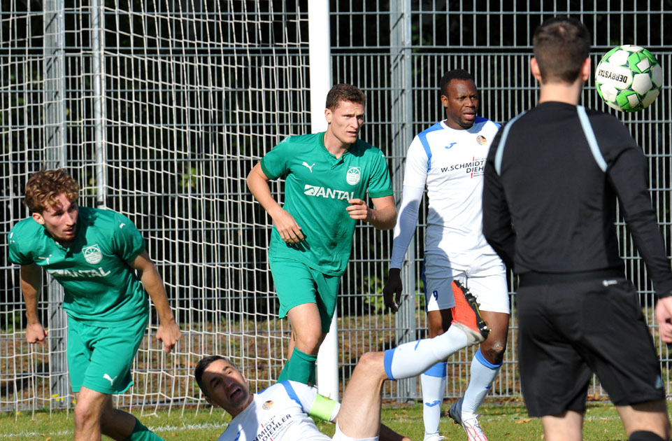 Am Ende des Spiels wurde es wieder hektisch, in der 82.Minute erhielt Oberrad einen Handelfmeter, als ein Nachschuss abgeblockt wurde. Masse Bell Bell schnappte sich das Leder und erzielte mit seinem 10.Saisontor die 1:0-Führung für die Gäste. Die Bosnier warfen jetzt alles nach vorne und es gab einige turbulente Szenen im Oberräder Strafraum, zweimal forderten die Gastgeber vergeblich Handelfmeter, als die Abwehrspieler der Spvgg. sich immer wieder in die Schüsse warfen. So blieb es bis zum Schluss beim etwas glücklichen Sieg für die Oberräder, die damit in der Tabelle einen Sprung auf Platz 3 machten, nur zwei Punkte hinter Tabellenführer Neu-Anspach.