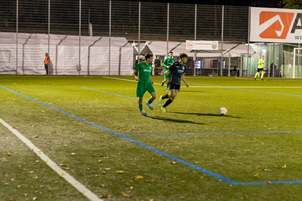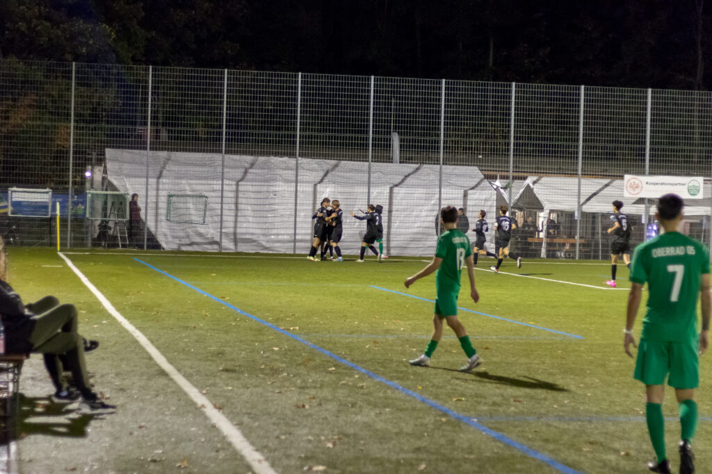 Das 0:2 für die Gäste in der 39.Minute war dann Geschenk der Oberräder, als ein Spieler den Ball am eigenen 16-Raum mit einem versuchten Dribbling vertändelte und der Pass erneut bei Malik Makey landete, der mit seinem 10.Saisontor die Führung der Gäste ausbaute. Die Oberräder waren jetzt angeschlagen, kamen aber kurz vor der Pause zu einem günstigen Zeitpunkt noch zum Anschlusstreffer. Nach einem Gewühl im Strafraum der Gäste mit mehreren Schussversuchen landete der Ball schließlich bei Masse Bell Bell, der mit einem Abstauber aus drei Metern das 1:2 erzielte. Das war gleichzeitig auch die letzte Aktion des Oberräder Stürmers, der sich bei diesem Tor verletzte und nach dem Halbzeitpfiff nicht mehr auf das Spielfeld zurückkehrte.