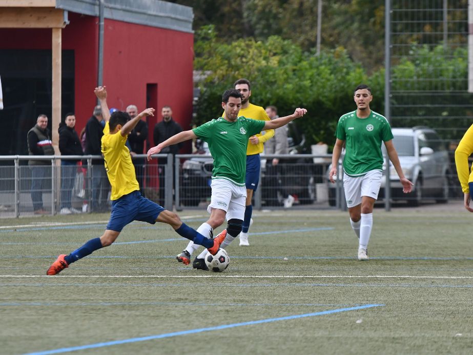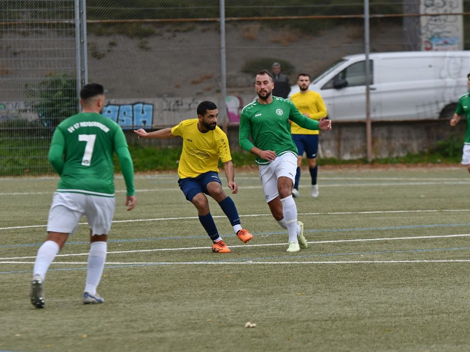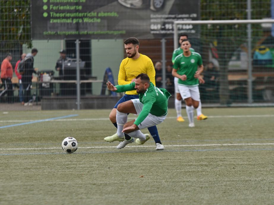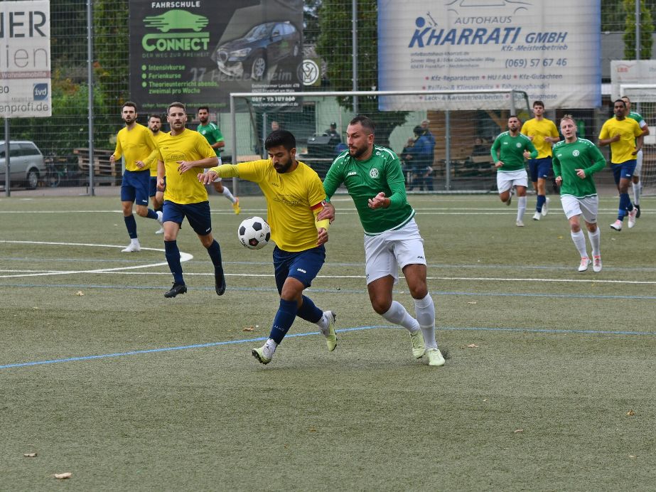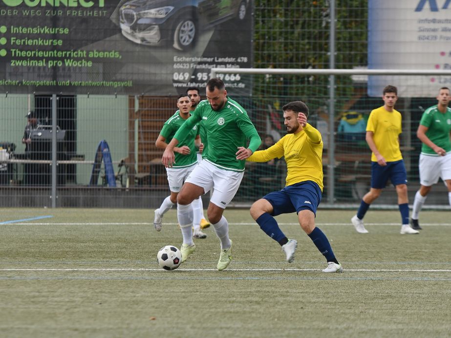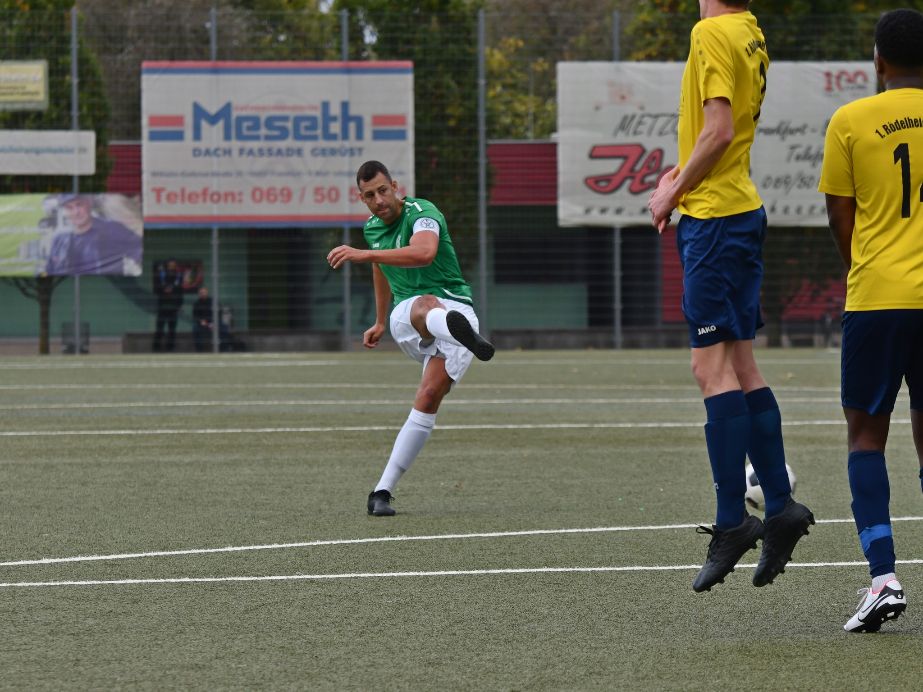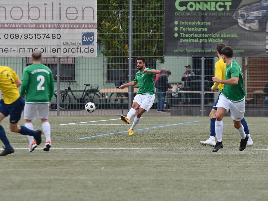 Von Beginn an waren die Rödelheimer ballsicherer und hatten deutlich mehr vom Spiel. Die Gäste setzten Heddernheim unter Druck und hatten ein Chancenplus. Die größte Gefahr ging zunächst von Eckbällen aus, die Jonas Friedrich gefährlich von der linken Seite hereinbrachte. Dreimal wurde auf oder vor der Linie gerade noch geklärt, beispielsweise von Jose Ferreira-Alves. Nach 16 Minuten dann doch die längst verdiente Führung der Rödelheimer. Ein Freistoß von Niklas Vogt landete bei Mesghina, dessen Zuspiel verwandelte Enno Lang per Aufsetzer unhaltbar in die lange Ecke. Mitten in die nun folgende Heddernheimer Druckphase hinein spielten Vogt und der agile Arazm Saghafi einen sehenswerten Konter über links (32.), Vogts Abschluss aus spitzem Winkel wurde gerade noch von der Linie gekratzt. Es war klar, dass Heddernheim in der zweiten Hälfte den Druck erhöhen wurde, nachdem die Stürmer der Grün-Weißen im ersten Abschnitt komplett abgemeldet waren. Weder Marcus Kreckel noch Oliver Solarz konnten Akzente setzen.