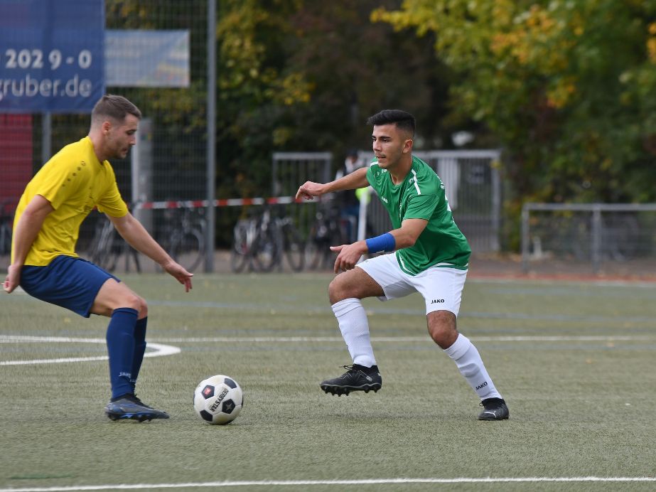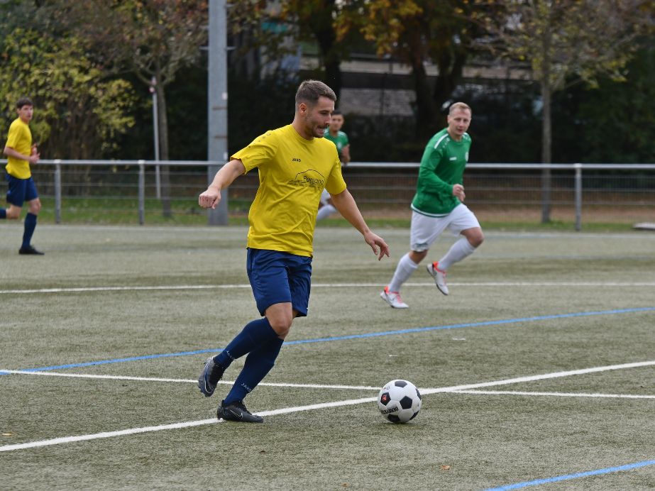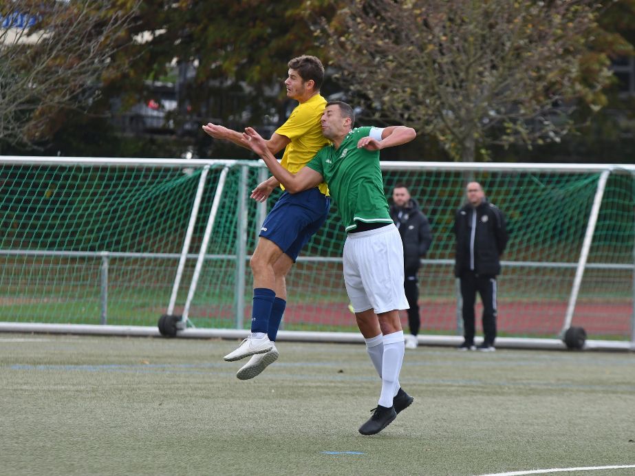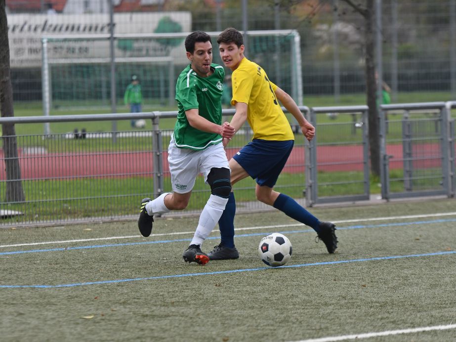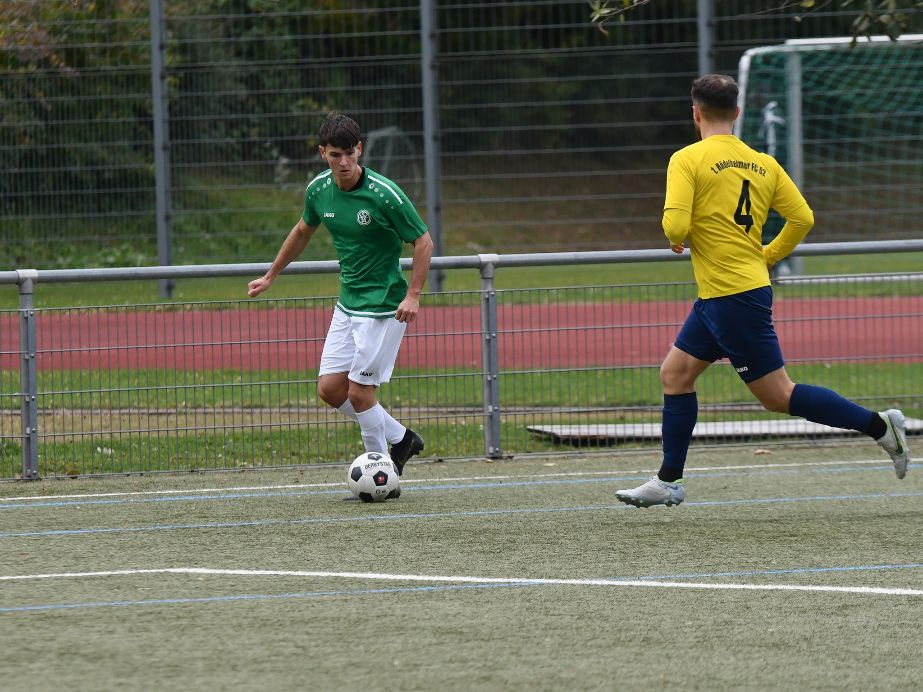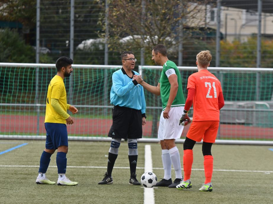 Von Beginn an waren die Rödelheimer ballsicherer und hatten deutlich mehr vom Spiel. Die Gäste setzten Heddernheim unter Druck und hatten ein Chancenplus. Die größte Gefahr ging zunächst von Eckbällen aus, die Jonas Friedrich gefährlich von der linken Seite hereinbrachte. Dreimal wurde auf oder vor der Linie gerade noch geklärt, beispielsweise von Jose Ferreira-Alves. Nach 16 Minuten dann doch die längst verdiente Führung der Rödelheimer. Ein Freistoß von Niklas Vogt landete bei Mesghina, dessen Zuspiel verwandelte Enno Lang per Aufsetzer unhaltbar in die lange Ecke. Mitten in die nun folgende Heddernheimer Druckphase hinein spielten Vogt und der agile Arazm Saghafi einen sehenswerten Konter über links (32.), Vogts Abschluss aus spitzem Winkel wurde gerade noch von der Linie gekratzt. Es war klar, dass Heddernheim in der zweiten Hälfte den Druck erhöhen wurde, nachdem die Stürmer der Grün-Weißen im ersten Abschnitt komplett abgemeldet waren. Weder Marcus Kreckel noch Oliver Solarz konnten Akzente setzen.