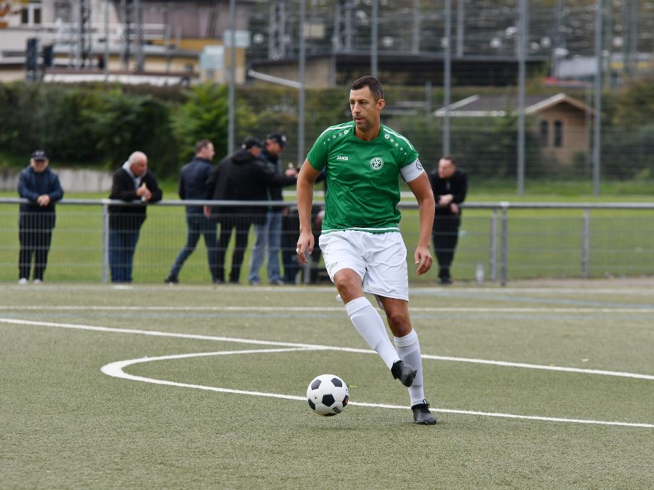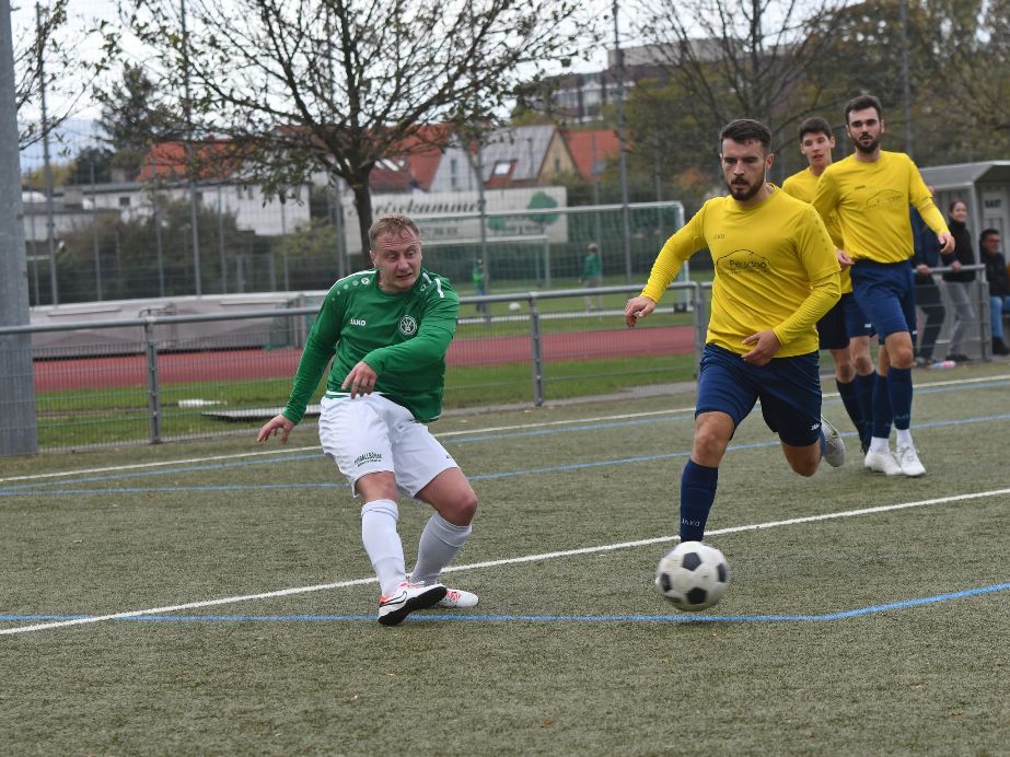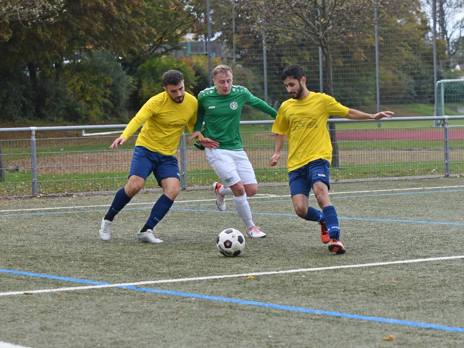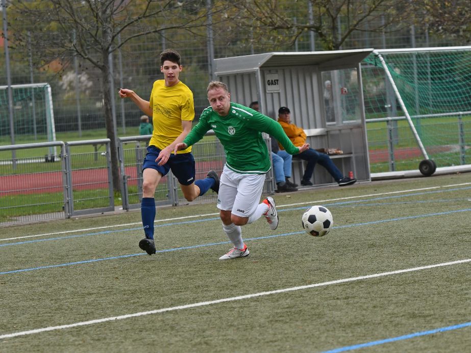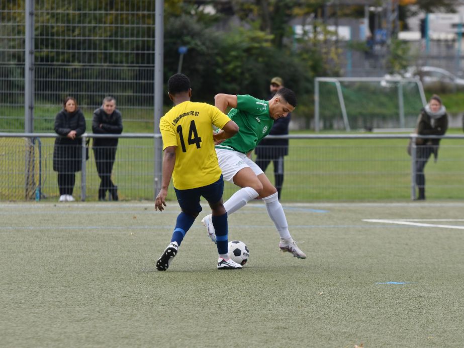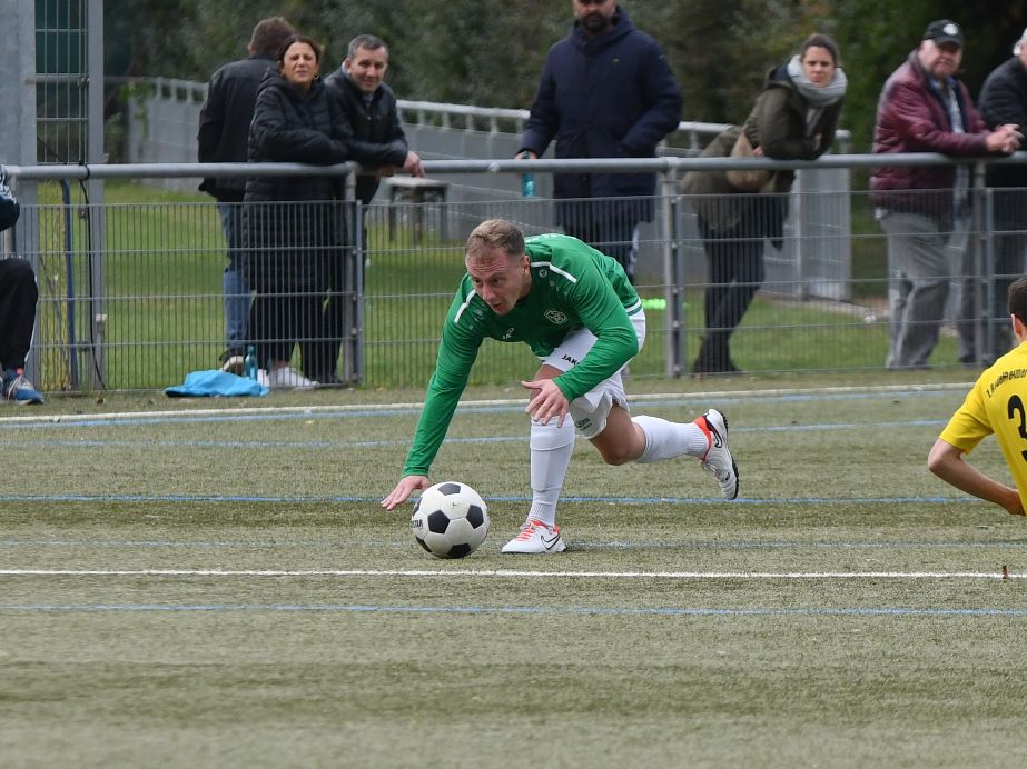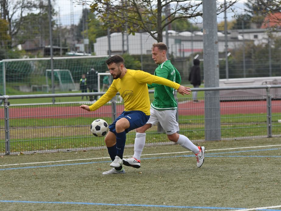 Von Beginn an waren die Rödelheimer ballsicherer und hatten deutlich mehr vom Spiel. Die Gäste setzten Heddernheim unter Druck und hatten ein Chancenplus. Die größte Gefahr ging zunächst von Eckbällen aus, die Jonas Friedrich gefährlich von der linken Seite hereinbrachte. Dreimal wurde auf oder vor der Linie gerade noch geklärt, beispielsweise von Jose Ferreira-Alves. Nach 16 Minuten dann doch die längst verdiente Führung der Rödelheimer. Ein Freistoß von Niklas Vogt landete bei Mesghina, dessen Zuspiel verwandelte Enno Lang per Aufsetzer unhaltbar in die lange Ecke. Mitten in die nun folgende Heddernheimer Druckphase hinein spielten Vogt und der agile Arazm Saghafi einen sehenswerten Konter über links (32.), Vogts Abschluss aus spitzem Winkel wurde gerade noch von der Linie gekratzt. Es war klar, dass Heddernheim in der zweiten Hälfte den Druck erhöhen wurde, nachdem die Stürmer der Grün-Weißen im ersten Abschnitt komplett abgemeldet waren. Weder Marcus Kreckel noch Oliver Solarz konnten Akzente setzen.