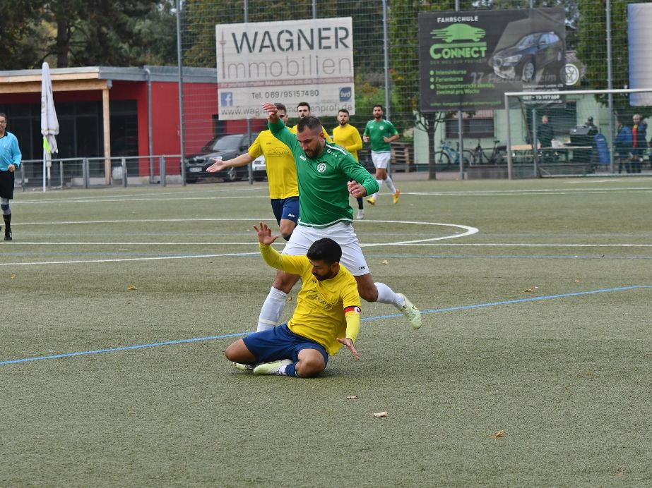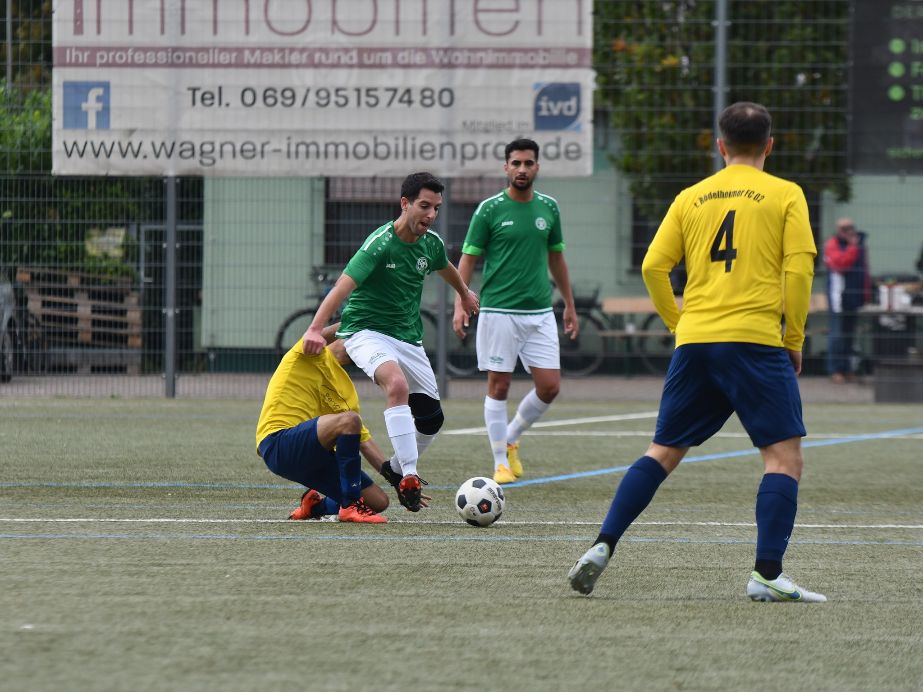 Man hatte sich als Schwachpunkt die rechte Rödelheimer Abwehrseite ausgesucht, schaffte dort häufig Überzahl und brachte von dort einen Ball nach dem anderen in die Mitte. Die beste Chance der Hausherren erst in der 59. Minute, als nach einem Konter über Kreckel Deniz Yatci knapp drüber schoss. Freistöße von Kapitän Philipp Siegel sorgten immer wieder für Gefahrenmomente im Rödelheimer Strafraum. Niklas Vogt traf dann aus 18 Metern den Pfosten, Lang stand da wo ein Stürmer stehen muss und verwandelte den Abpraller zum 0:2 (72.). Kurz darauf aber kam Heddernheim ins Spiel zurück. Eine Co-Produktion der Neuzugänge Julian Grundel und Marcus Kreckel, der seine Flanke einschob (74.) sorgte für das 1:2. Die Heddernheimer spielten nun alles oder nichts, doch die Rödelheimer Defensive hielt dem Druck stand. Bis in der Nachspielzeit der eingewechselte Luka Filip Brnas aus der Reserve von links flankte und Kreckel erneut zum 2:2 zur Stelle war (90./+1). Die Gäste beschwerten sich, das Tor sei aus Abseitsposition gefallen, was eine kleine Rudelbildung nach sich zog.
