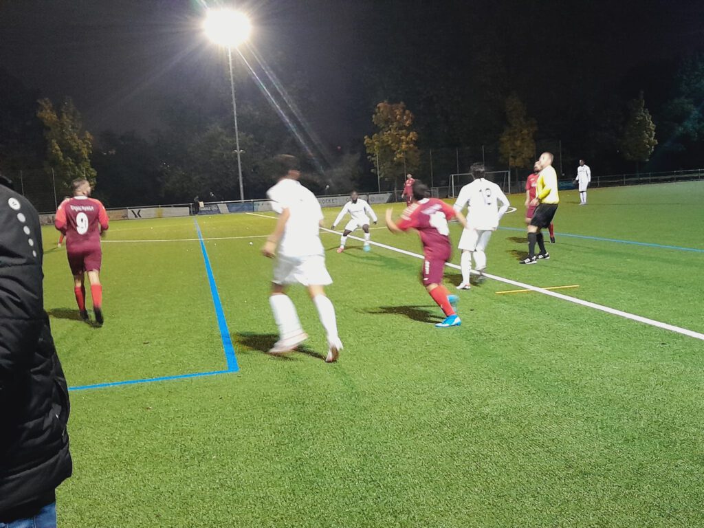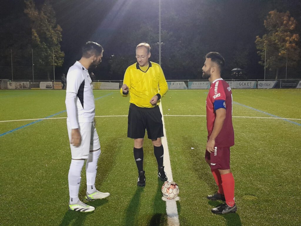 Die Partie begann auf dem Kunstrasen mit zehn Minuten Verspätung. Zum einen brauchten die Teams ziemlich lange, um den Weg vom Funktionsgebäude bei strömendem Regen auf unbeleuchteten Wegen zurückzulegen. Zum anderen hielt es der Schiedsrichter für nötig, mit beiden Teams separat eine Ansprache über die Besonderheiten seiner Pfeifkunst abzuhalten. Griesheim spielte genau so, wie man im Abstiegskampf agieren sollte. Sie konzentrierten sich zunächst auf die Verteidigung und störten den Spielaufbau von Türkgücü. „Genauso habe ich den Gegner erwartet“, sagte TSKV-Trainer Mehmet Tunay Somun, den der prozentual hohe Ballbesitzanteil seines Teams nicht überraschte. Die mögliche Führung vergab Murat Tiryaki, der einst auch für die „Schleifer“ stürmte. Einem langen Ball lief das „Schlitzohr“ hinterher, sah dass 02-Torhüter Adoney Johannes auf dem nassen Boden ausrutschte und schoss den Ball knapp am leeren Tor vorbei (15.).