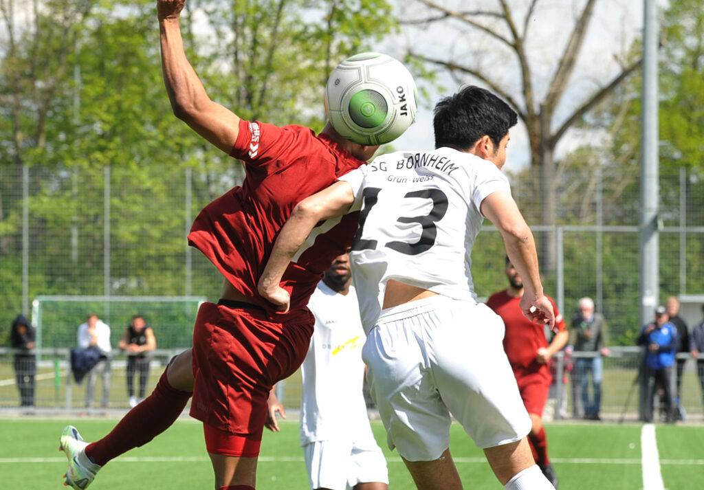 Die möglicherweise spielentscheidende Szene spielte sich in der 55.Minute ab, als RW-Spieler Clinton Adjei Asante einen schnellen Freistoß der Bornheimer verhindern wollte und aufgrund seiner Vorbelastung vom Schiedsrichter die gelb-rote Karte gezeigt bekam. Von diesem Zeitpunkt an übernahm der Gast etwas die Kontrolle im Spiel und erzielte in der 65.Minute das 1:0 durch einen direkt verwandelten Freistoß von Lukas Knell, der mit seinem zehnten Saisontor erfolgreich war. Doch die dezimierten Gastgeber gaben nicht auf und erspielten sich auch gute Ausgleichschancen, entweder vergeben sie diese oder Torwart Jonathan Höser konnte die Bälle parieren. Bei einem Konter der Grün-Weissen war es dann Benny Christian Lafortune, der die Vorentscheidung in der 82.Minute mit seinem Tor zum 2:0 erzielte. Marcus Hegedüsch, Sportlicher Leiter der Rot-Weissen, meinte, „ein Unentschieden wäre drin gewesen“. GW-Trainer Sascha Volk sagte, „in der ersten Halbzeit hätte das Spiel in beide Richtungen gehen können.“ Er zeigte sich erfreut über das erste Zu-Null-Spiel in dieser Saison und konstatierte: „wir sind hochzufrieden, dass wir dieses Spiel gewonnen haben. Es war kein schlechteres Spiel als letzte Woche, aber heute hatten wir das Glück, dass wir mal in Führung gehen konnten.“