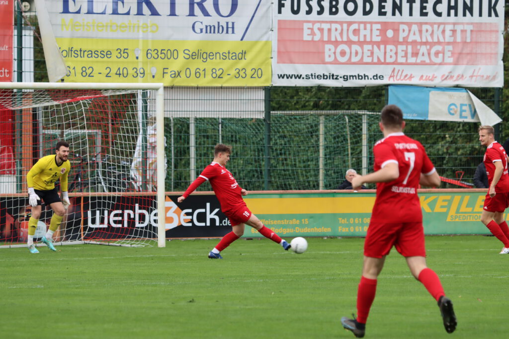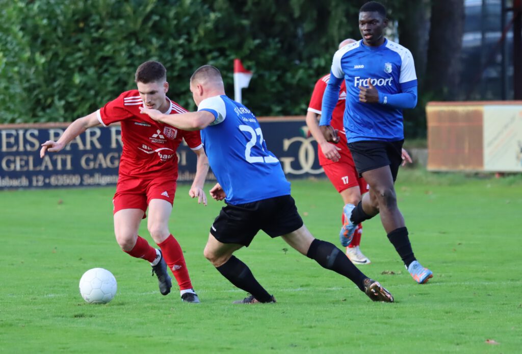 SGB-Trainer Sascha Volk nach dem Spiel: „ich glaube, ein Punkt wäre hier auf jeden Fall verdient gewesen, es war ein Fifty-Fifty-Spiel, absolut auf Augenhöhe. in der ersten Hälfte hatte Seligenstadt die etwas klareren Torchancen, aber wir hatten viele gute Chancen, als Luki (Lukas Knell, die Red.) vor dem Torwart alleine war, der Ball springt auf, dann Bela Schuster im Strafraum einmal durch, also es wären auch in der ersten Halbzeit genug Gelegenheiten gewesen, wo es auch 1.1 zur Halbzeit hätte stehen können. So lief die zweite Halbzeit eigentlich auch, die erste Viertelstunde sind wir jetzt nicht so gut reingekommen, aber dann haben wir nach den Wechseln noch einmal gut Druck aufgebaut, hatten viele strittige Szenen, glaube ich, die man auch anders hätte entscheiden können. Von daher sind wir jetzt schon enttäuscht, dass wir mit 0 Punkten nach Hause fahren und 1:0 verloren haben. Wenn man sich das gesamte Spiel betrachtet, wäre ein Punkt verdient gewesen.“