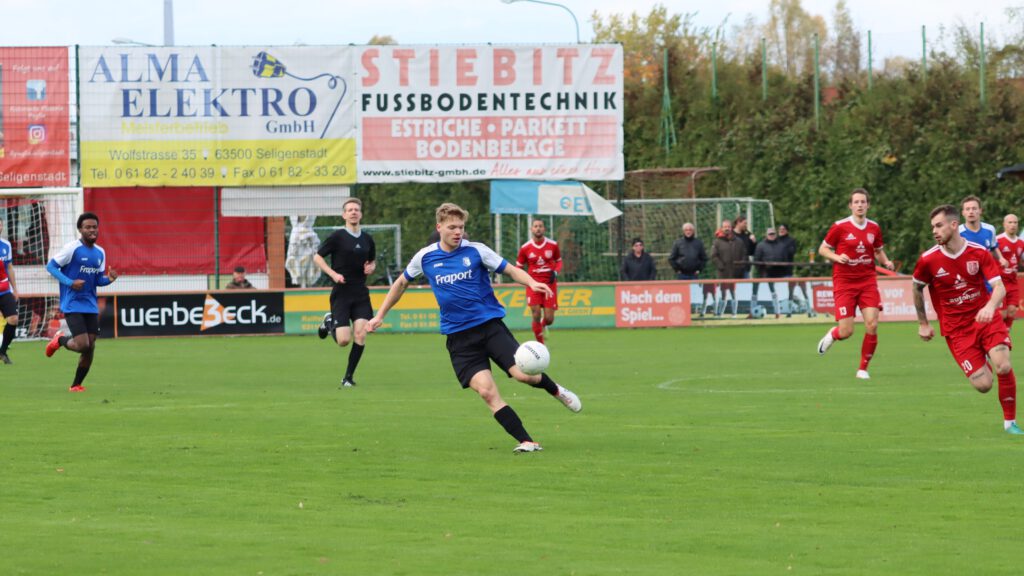 In Seligenstadt trafen die drittplatzierten Sportfreunde auf den Tabellenvierten SG Bornheim/Grün-Weiss, beide Mannschaften wollten den Kontakt zur Tabellenspitze beibehalten. Eines vorab; die Platzbedingungen ließen kein gutes „Spiel“ zu, durch den tiefen Rasen kamen keine spielerischen Glanzpunkte auf, und hohe Bälle blieben sofort in dem tiefen Gras hängen. Die Sportfreunde wollten unter Interimstrainer Khaibar Amani, der die Sportfreunde nach der Trennung von Trainer Ralf Weber zu drei Siegen führte, ihre Siegesserie fortsetzen.