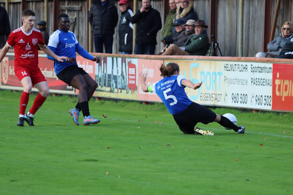 In der zweiten Hälfte übernahmen die Gastgeber das Kommando und kamen zu guten Torchancen, in der 54.Minute war es erneut Robin Weber, der mit einem Volleyschuss nur die Querlatte traf. Nur drei Minuten später war es Patrick Hofmann mit einem Weitschuss, den Torwart Höser prallen ließ, den Abpraller köpfte Robin Weber auf das Tor, wo Lukas Höser erneut parieren konnte, der Ball wurde dann zur Ecke abgewehrt. Auch diese Ecke brachte Gefahr für das Bornheimer Tor, doch der Kopfball von Fabian Friess ging knapp über das Tor. Die letzten 15 Minuten des Spiels gingen dann an die Bornheimer, die durch ihre Wechsel noch einmal frischen Wind brachten. Die größte Chance brachte ein Weitschuss von Pau Babot, der knapp über das Tor strich. Letztlich fanden die Bornheimer nicht die richtigen Ideen in der Offensive, um gefährlich zu werden.