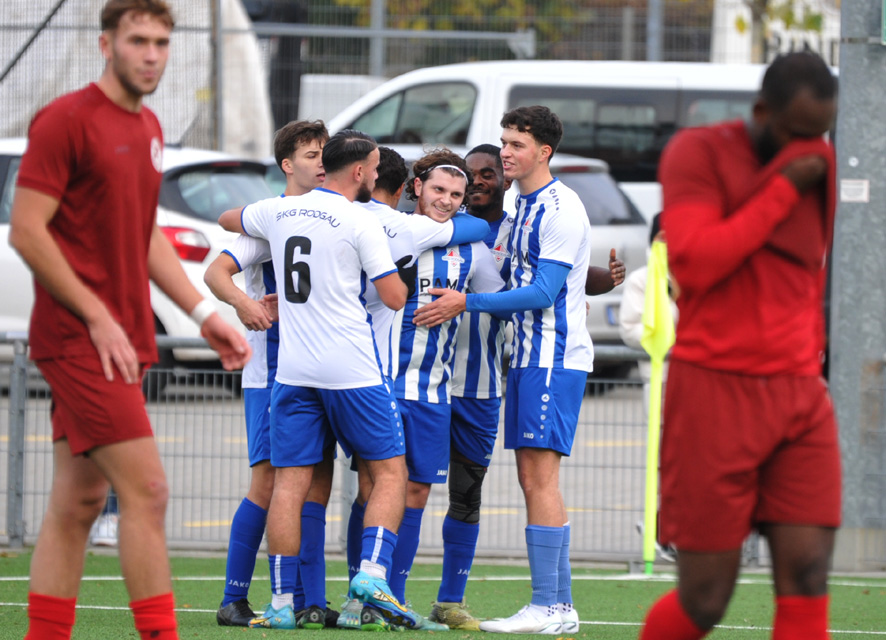 Am Sonntag Nachmittag trafen mit RW Frankfurt und der S.K.G Rodgau zwei Mannschaften aufeinander, die nur zwei Punkte getrennt auf dem 14.und 15.Tabellenplatz lagen, ein wichtiges Spiel im Abstiegskampf, konnten die Rodgauer doch bei einem Sieg sogar an den Rot-Weissen in der Tabelle vorbeiziehen. Und lange sah es auch nach einem Auswärtssieg aus.