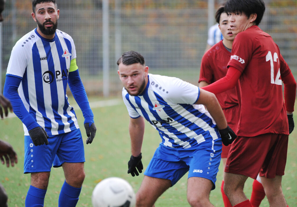 Die spielentscheidende Szene ereignete sich dann in der 48.Minute, als der Rodgauer Torwart Alpay Sevim für eine Notbremse außerhalb des Strafraums vom Schiedsrichter die rote Karte bekam. RW-Trainer Cigdem reagierte sofort und wechselte in der Zeit, in der sich der neue gegnerische Torwart zum Einsatz bereit machte, mit Patrick Alpay Gürser seinen Freistoßspezialisten ein. Der folgende Freistoß wurde von Gürser getreten und von einem Rodgauer Spieler mit der Hand abgewehrt, den folgenden Handelfmeter verwandelte Gürser in der 50.Minute zum 1:3. Urplötzlich waren die Rot-Weissen wieder da und versuchten, in Überzahl das Spiel zu drehen. In der 65.Minute war es dann Ayoub Lahchaychi, der den Anschlusstreffer zum 2:3 erzielen konnte. Jetzt stand das Spiel auf Messers Schneide und immer wieder rollten die Angriffe auf das Rodgauer Tor, es dauerte aber bis zur 90.Minute, bis Flavio Alberto Cuna den Ausgleich zum 3:3 erzielen konnte. Damit gaben sich die Rot-Weissen nicht zufrieden und sie schossen dann in der sechsten Minute der Nachspielzeit durch Raymond Williams noch den Siegtreffer zum 4:3, ein wichtiger Sieg im Abstiegskampf, mit dem man den Gegner aus Rodgau auf fünf Punkte distanzieren konnte. Am Ende der Hinrunde liegen die Frankfurter jetzt auf Platz 13 immer noch in bedrohlichen Gefilden.