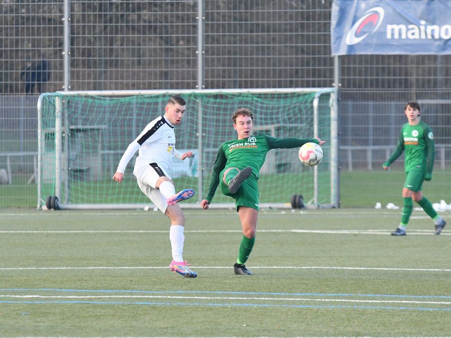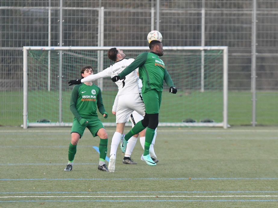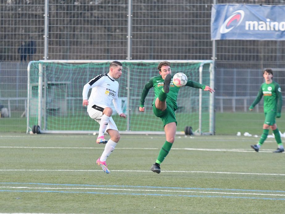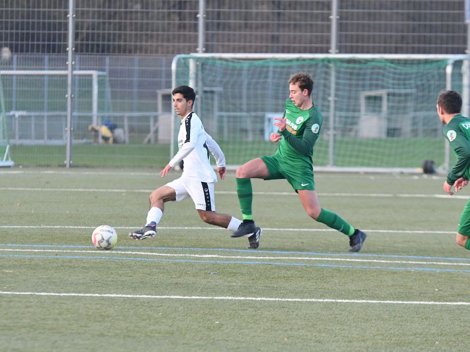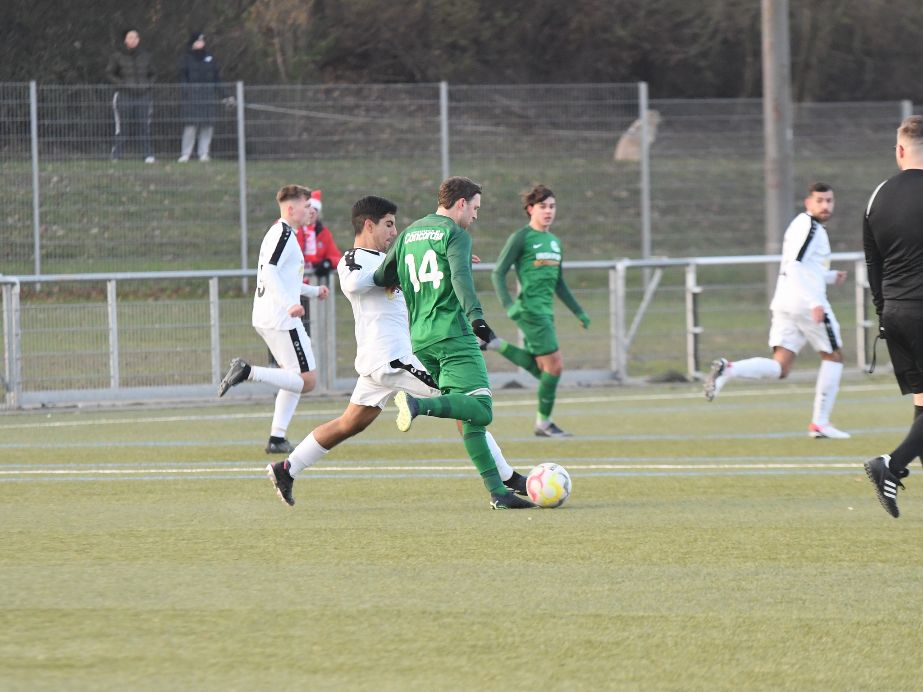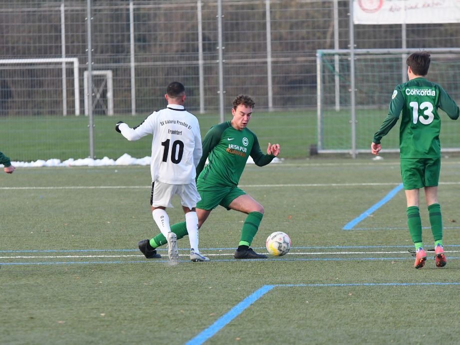 Preußen-Trainer Artur Rissling war zunächst der Meinung, dass man „nicht unbedingt hätte spielen müssen. Der Platz war steinhart und gefroren. Bei uns gab es übrigens auch kein warmes Wasser, da die Leitungen gefroren waren und die Partie wurde nicht abgesagt.“ Zum Spiel: Die Hausherren brauchten 20 Minuten um ins Spiel zu finden. Da waren die Concorden nach einem schönen Angriff mit einer Flanke und dem Kopfballtor von Leo Burkhardt (19.) schon in Führung gegangen. In der Folge traf der Spitzenreiter einmal die Latte und stand zweimal aussichtsreich vor Concordia-Torhüter Finn Hoffmann, der aus der A-Jugend hochgezogen wurde und seit seinem fünften Lebensjahr schon bei Concordia Eschersheim spielt. Nach dem Seitenwechsel hatten die Gäste direkt nach Wiederanpfiff die Riesenchance zum 2:0.