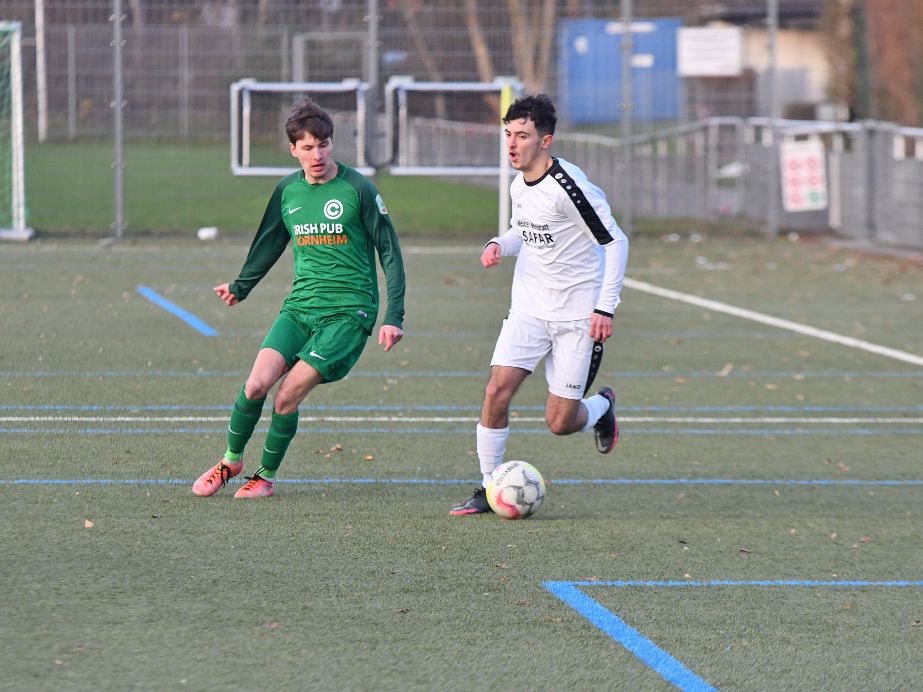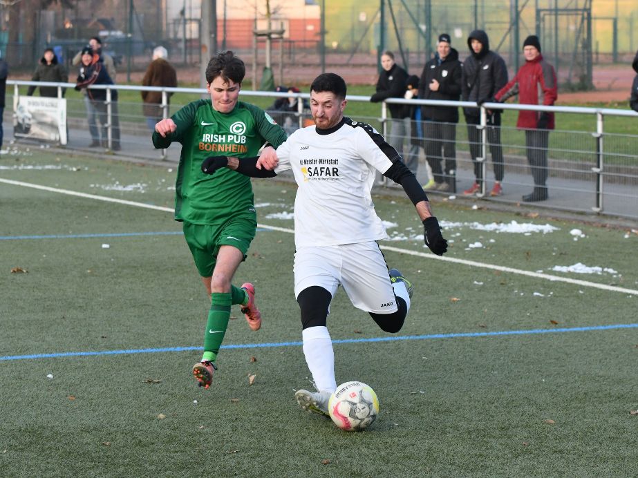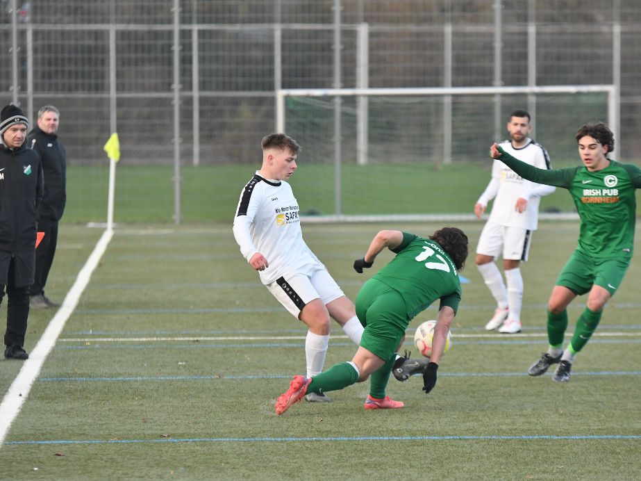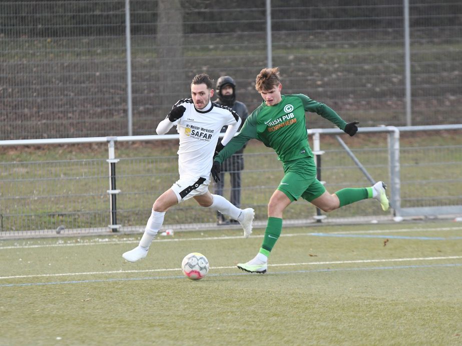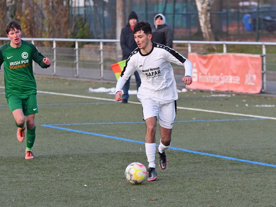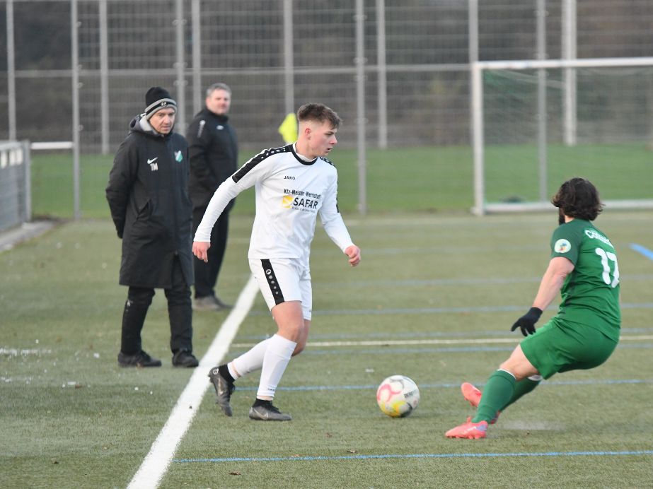 Preußen-Trainer Artur Rissling war zunächst der Meinung, dass man „nicht unbedingt hätte spielen müssen. Der Platz war steinhart und gefroren. Bei uns gab es übrigens auch kein warmes Wasser, da die Leitungen gefroren waren und die Partie wurde nicht abgesagt.“ Zum Spiel: Die Hausherren brauchten 20 Minuten um ins Spiel zu finden. Da waren die Concorden nach einem schönen Angriff mit einer Flanke und dem Kopfballtor von Leo Burkhardt (19.) schon in Führung gegangen. In der Folge traf der Spitzenreiter einmal die Latte und stand zweimal aussichtsreich vor Concordia-Torhüter Finn Hoffmann, der aus der A-Jugend hochgezogen wurde und seit seinem fünften Lebensjahr schon bei Concordia Eschersheim spielt. Nach dem Seitenwechsel hatten die Gäste direkt nach Wiederanpfiff die Riesenchance zum 2:0.