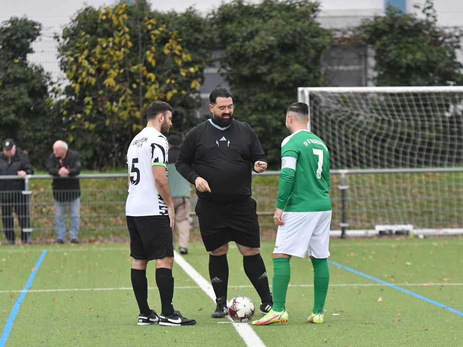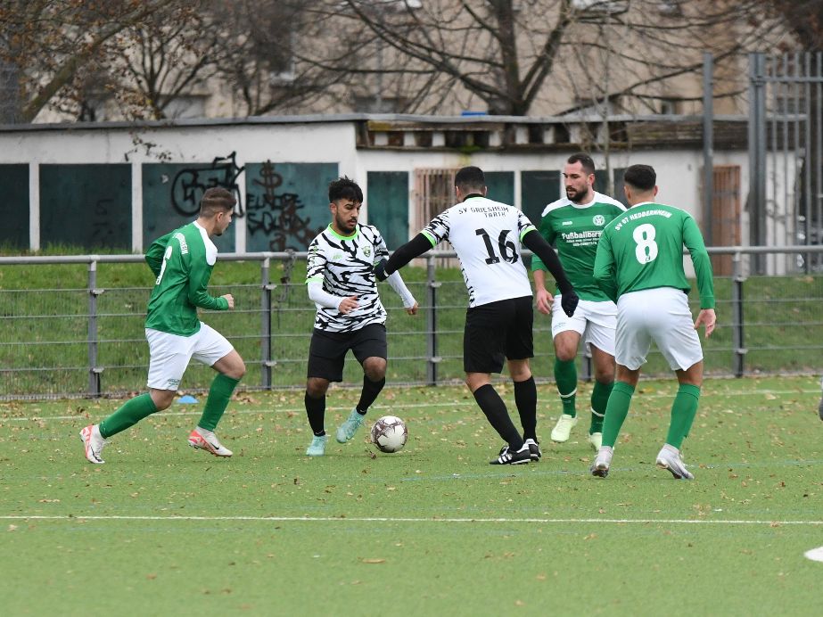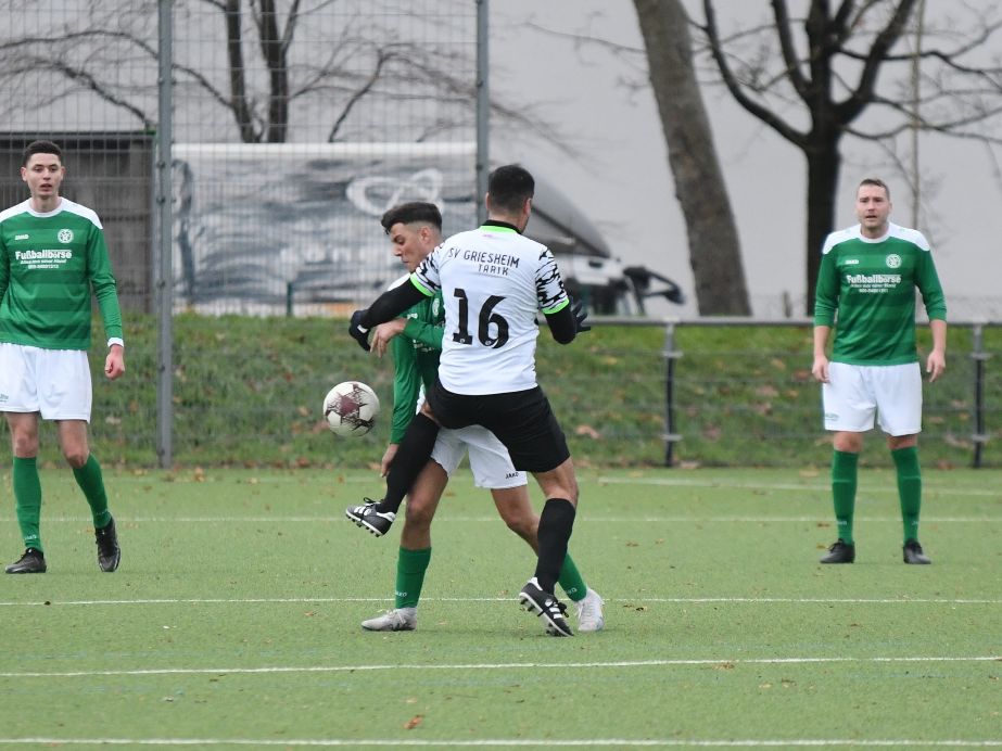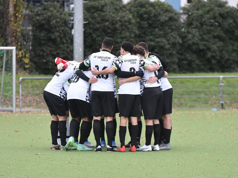 Kurz vor Schluss verursachte Routinier Benjamin Mettlach, vor der Runde vom A-Klassist SG Praunheim gekommen, einen unnötigen Foulelfmeter. Den verwandelte A.Keser zum 3:2 (89.) und das Spiel schien gedreht. Doch in der Nachspielzeit leisteten sich die Hausherren eine weitere Unachtsamkeit in der Abwehr. Man ließ Deniz Yatci auf der linken Seite ungestört durchlaufen, dessen Flanke Solarz am langen Pfosten stoppte und überlegt zum umjubelten 3:3 einschoss (90./+6). „Das darf so niemals fallen, aber so ist Fußball. Zum Glück ist jetzt Winterpause. Mit Abstand kann man aber sagen, dass es eine gute Saison ist. Wir haben einige Spieler, die wir erst mitten in der Saison einbinden konnten. Mit ihnen hoffen wir auf eine bessere Restrunde“, sagte Hamza Azaoum. SVH-Trainer Andreas Berggold konstatierte nach dem Abpfiff: „Wir sind überglücklich, dass wir den Punkt mitgenommen haben. Wir haben überraschenderweise 2:0 geführt, obwohl die Vorzeichen nicht gut standen. Wir hatten nur einen Mann auf der Bank, ein anderer hat sich beim Warmmachen verletzt, der andere sucht jetzt noch nach dem Sportplatz. Wir haben unsere Konter gleich genutzt und waren eiskalt. Die beiden Gegentore waren unnötig, vor allem das zweite nach einem Eckball. Zweite Halbzeit war Griesheim die spielbestimmende Mannschaft, das waren sie auch schon davor. Wir konnten aber weniger Nadelstiche setzen. Brutal war der Elfmeter in der 89. Minute, der auch einer war. Dann dachte jeder, das Spiel wäre durch. Wir haben uns aber aufgebäumt und mit dem letzten Angriff über unsere starke linke Seite mit Deniz Yatci den Ball reingebracht und Solarz stand am langen Pfosten und schoss ein.“