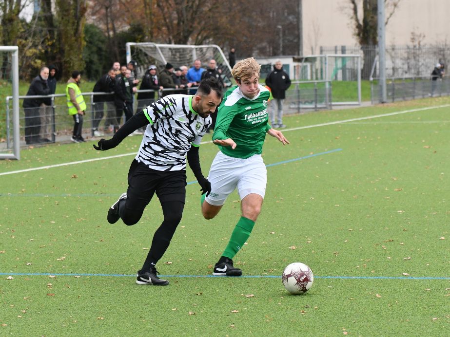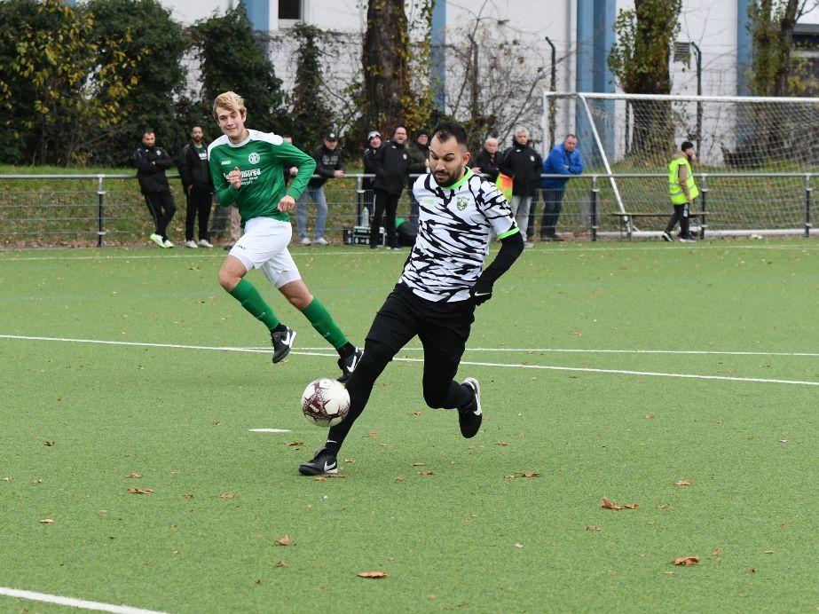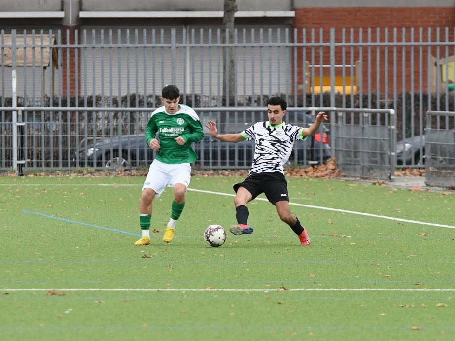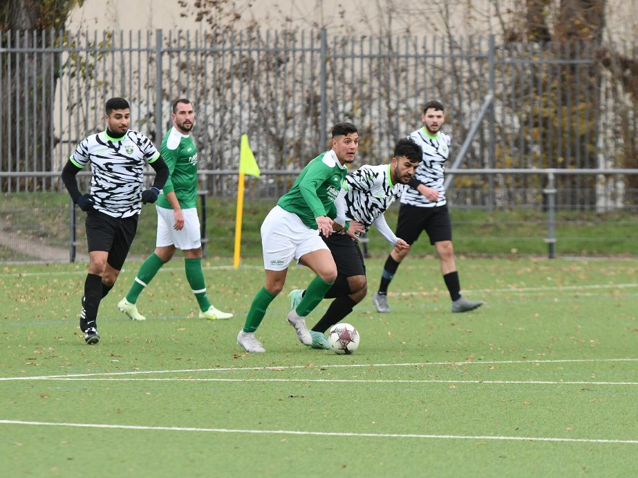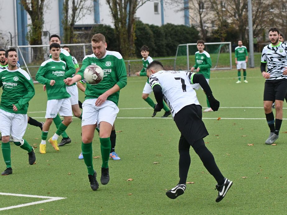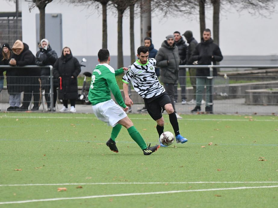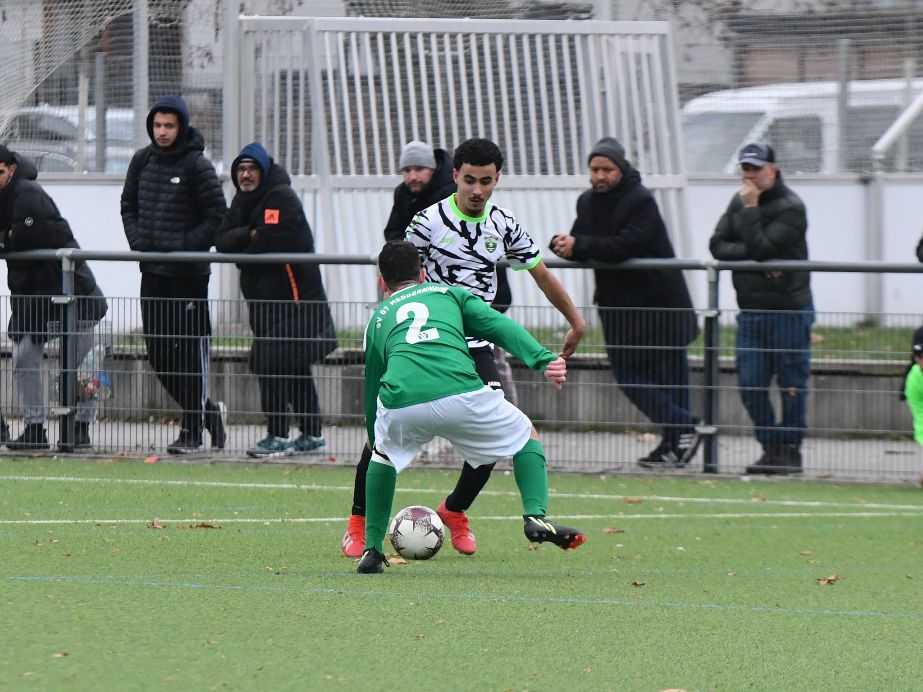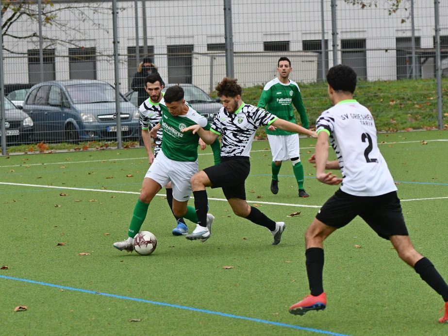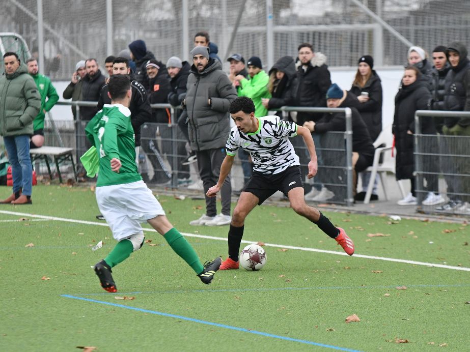 Erst vor vier Wochen hatte Tarik in Heddernheim mit 5:0 gewonnen, im Rückspiel lief vieles anders ab. Die Gastgeber liefen laut Trainer Hamza Azaoum mit „einer anderen Mannschaft“ auf, denn es fehlten Marlon Schick und Yassin Araychi. Das traf aber auch auf den Gast zu, der mit einer nie zuvor erprobten Viererkette auflief. Und auch ansonsten musste Trainer Andreas Berggold improvisieren, der nur 12 Spieler zur Verfügung hatte. Unter anderem fehlte Kapitän Philipp Siegel aus privaten Motiven und ein eigentlich für die Startelf vorgesehener Spieler war seiner Zeit voraus und irrte mit einem gedanklichen Fehler durch den Osten Frankfurts zu einem erst im Januar angesetzten Testspiel. Ein Fall für das Kuriositätenkabinett am Jahresende. Heddernheim erwischte eine starke erste Viertelstunde und führte da dank der Treffsicherheit der Stürmer Marcus Kreckel, der eine Vorlage von Deniz Yatci einschob (5.) und Oliver Solarz, der einen Steilpass von Yassir Achati einschoss (13.) mit 2:0. „Wir haben zu viele Abwehrfehler gemacht“, konstatierte Hamza und meinte, „dass wir zu kompliziert gespielt haben. Es ist diese Saison unser Problem, dass wir zu schnell hinten liegen.“ Dennoch waren die Gastgeber nach dem überraschenden Rückstand am Drücker, konnten schnell durch den langen Ball auf Ilias Otmani auf 1:2 verkürzen (22.).