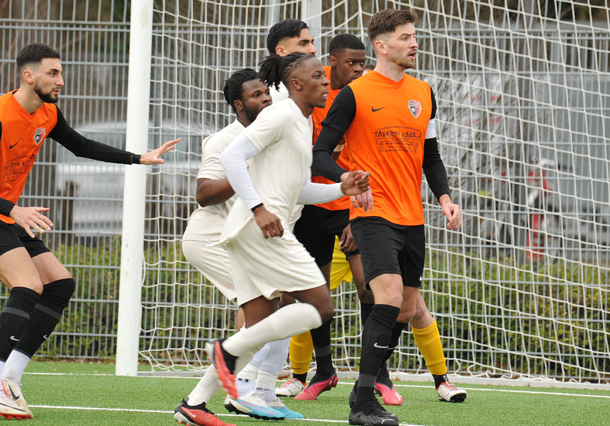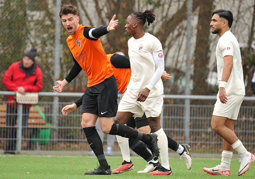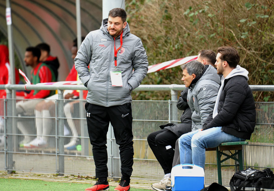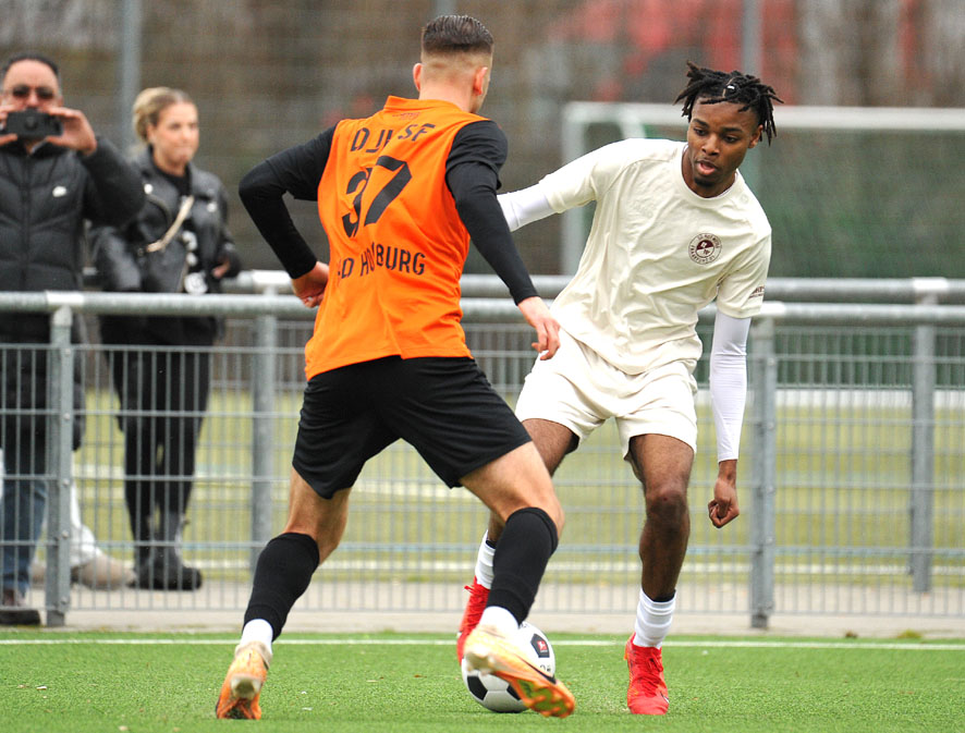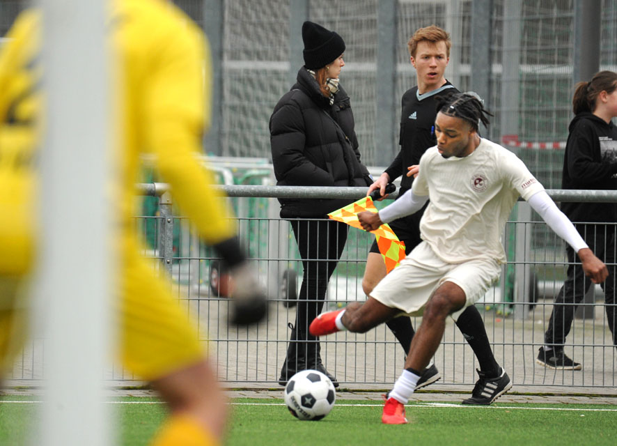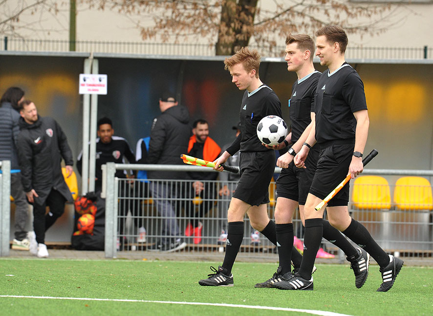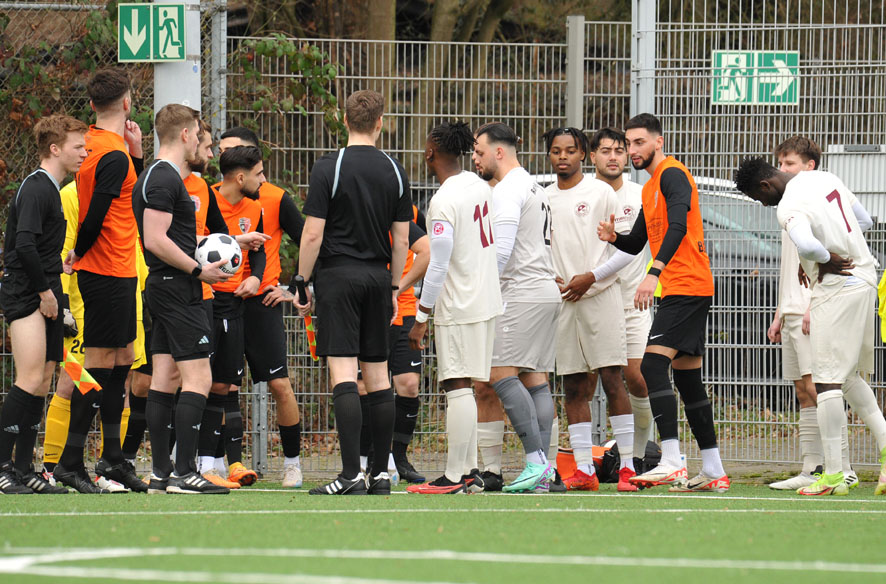 Rot-Weiss Frankfurt trat mit einer sehr jungen Mannschaft gegen den Favoriten aus Bad Homburg an, in der Startmannschaft standen drei Mann, die in der ersten Halbserie noch in der A-Jugend gespielt haben. Die DJK aus Bad Homburg wollten die Hinspielniederlage (0:4) vergessen machen. Allerdings waren es in den ersten 15 Minuten die auf einem Abstiegsplatz stehenden Rot-Weissen, die das Spiel bestimmten und mit frühem Pressing die Bad Homburger ein ums andere Mal in Verlegenheit brachten. Danach kamen die Gäste besser ins Spiel, es blieb aber bis zur Halbzeit ein Spiel auf Augenhöhe, die besseren Torchancen hatten allerdings die Sportfreunde, ohne aber zu 100-prozentigen Gelegenheiten zu kommen. So blieb es bis zur Pause beim leistungsgerechten 0:0.