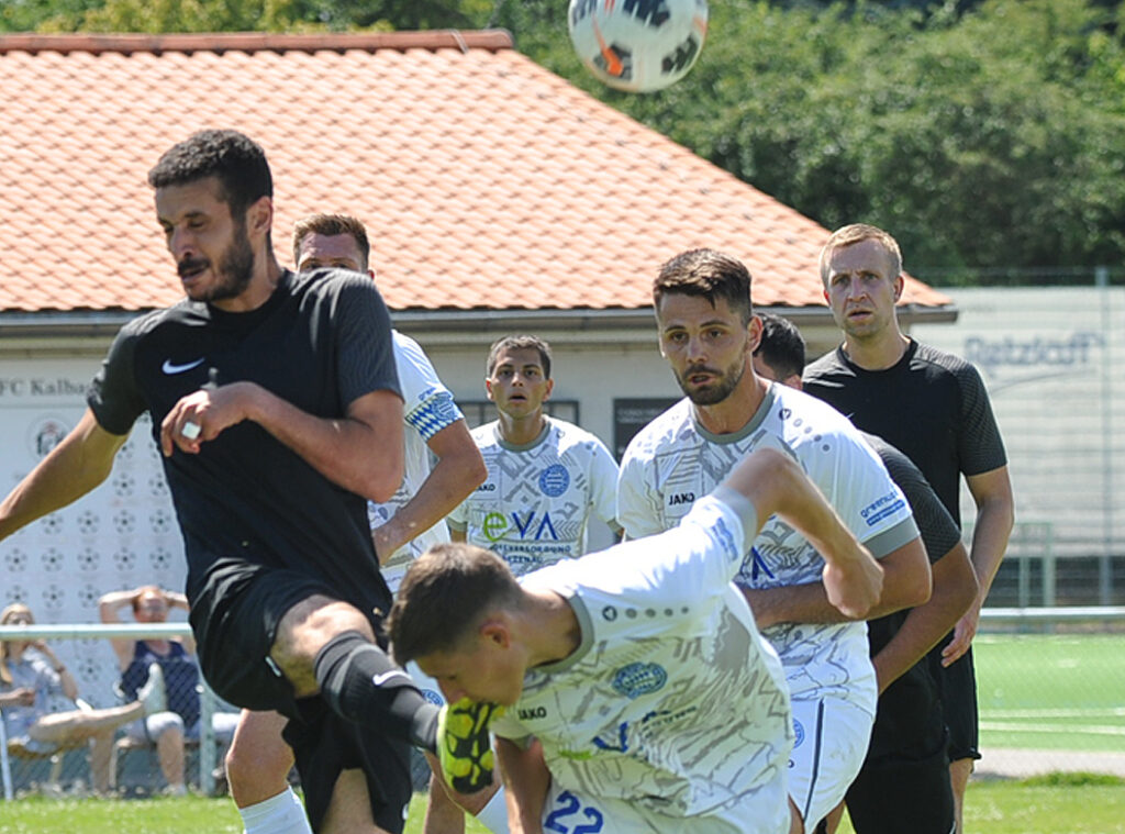 Der FC Kalbach wollte das dritte Spiel in der englischen Woche erfolgreich gestalten, letzte Woche gab es ein 2:2 in Bad Vilbel und dann am Dienstag im Pokal einen souveränen 5:1-Sieg beim FC Fortuna Frankfurt. Zum Abschluss der Woche kam mit dem FC Olympia Fauerbach der Tabellenletzte der Gruppenliga in das Stadion am Hopfenbrunnen. Und es wurde mal wieder ein schöner Tag für Kalbachs Goalgetter Achraf Gara Ali. Mit einem Foulelfmeter in der 27.Minute brachte er den FC Kalbach mit 1:0 in Führung.