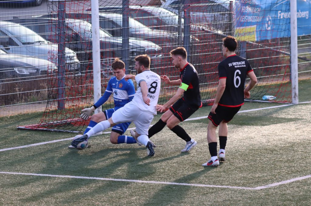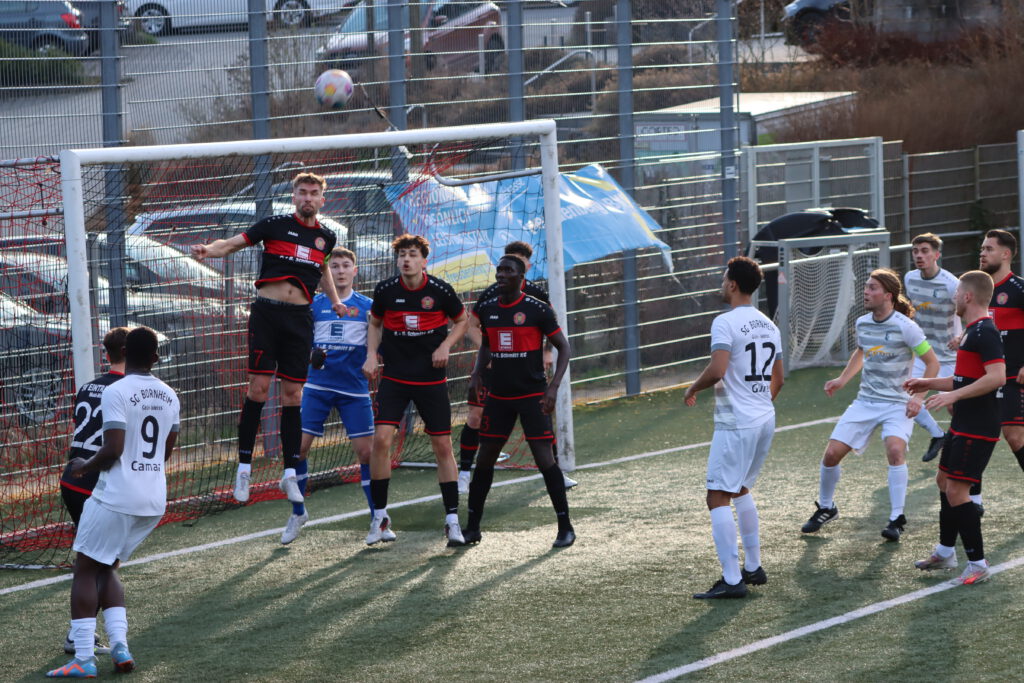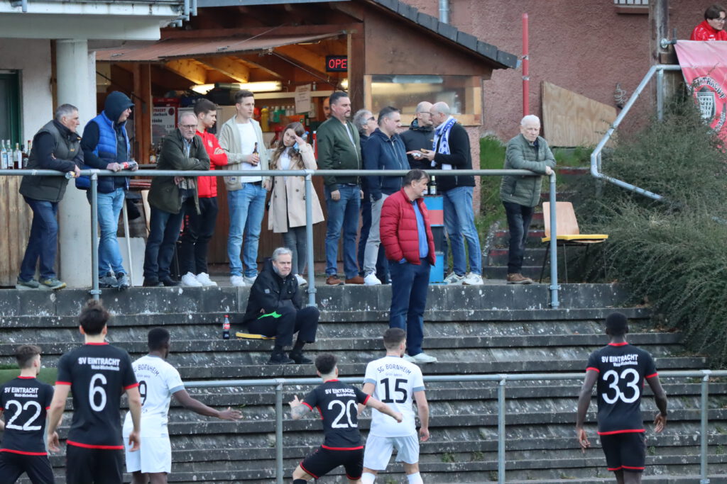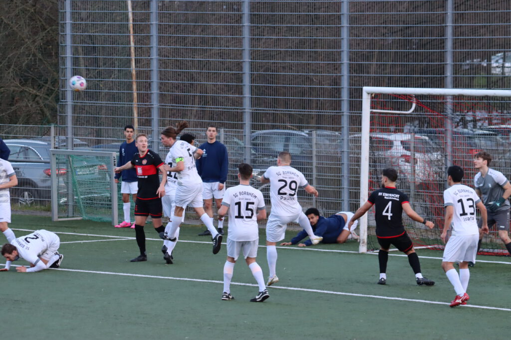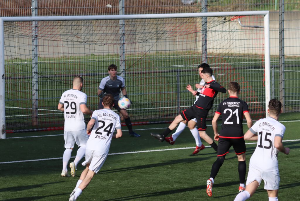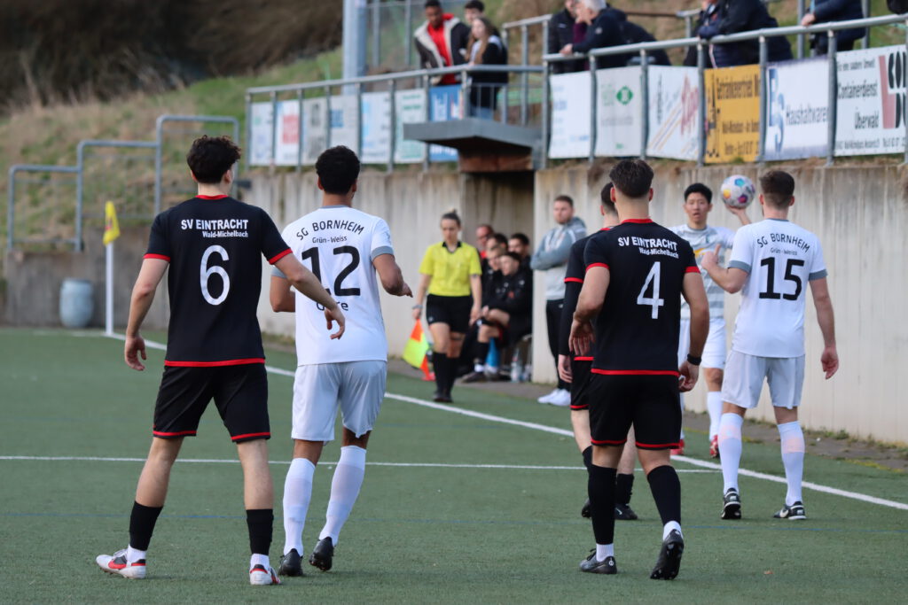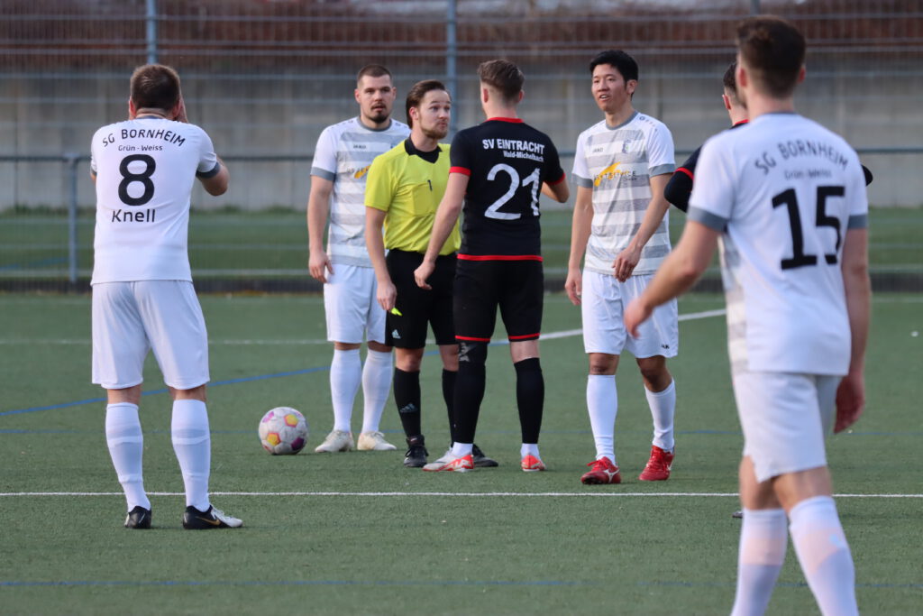 Die Bornheimer reisten nach Wald-Michelbach und wollten nach ihrem erfolgreichen Start nach der Winterpause mit dem 3:1 bei den Sportfreunden im nächsten Auswärtsspiel punktemäßig nachlegen, um den Abstand zu den gefährdeten Abstiegsplätzen zu vergrößern. Aber sie wurden in Wald-Michelbach von den Gastgebern kalt erwischt, denn bereits in der 7.Minute gingen sie durch ein Tor von Yannick Marx mit 1:0 in Führung, und Ylli Cermjani ließ bereits in der 16.Minute das 2:0 folgen für die Eintracht, die ihre zwei bisherigen Spiele nach der Winterpause gewinnen konnte und mit großem Selbstvertrauen aufspielte. Es war ein sehr intensives und teilweise auch hart geführtes Spiel, die Bornheimer kämpften sich nach dem frühen Zwei-Tore-Rückstand gut zurück ins Spiel und kamen dann in der 27.Minute durch ein Eigentor des Wald-Michelbachers Jens Bundschuh zum Anschlusstreffer. Die gute Phase der SG führte trotz einiger vorhandener Chancen nicht zum Ausgleich.