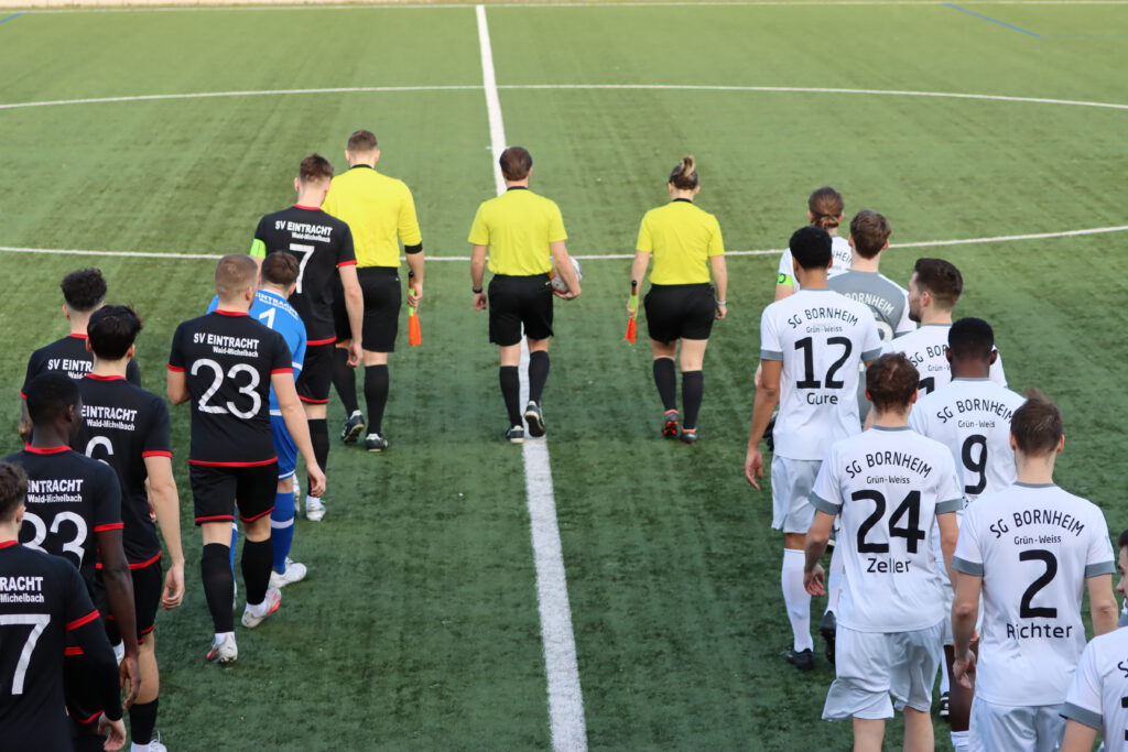 In der Pause musste Bornheims Trainer Sascha Volk auswechseln, der angeschlagene Luklas Knell wurde durch Valerio Lettieri ersetzt. Trainer Volk hofft, dass Knell, der einen guten Lauf hatte, nicht länger ausfällt. Auch die erste Viertelstunde nach der Pause gehörte den Bornheimern, aber es fehlte die nötige Effizienz vor dem Tor. Nach der 60.Minute ließen die Kräfte bei den Gästen in diesem intensiven Spiel durch das ewige Anrennen etwas nach und es gelang der SG nicht mehr, zu guten Chancen zu kommen. Die Wald-Michelbacher konnten mit einem Konter in der 82.Minute erneut durch Ylli Cermjani das 3:1 erzielen, danach war das Spiel gelaufen. Für Trainer Volk war der Sieg der Wald-Michelbacher in Betrachtung der 90 Minuten „ein verdienter Sieg“.