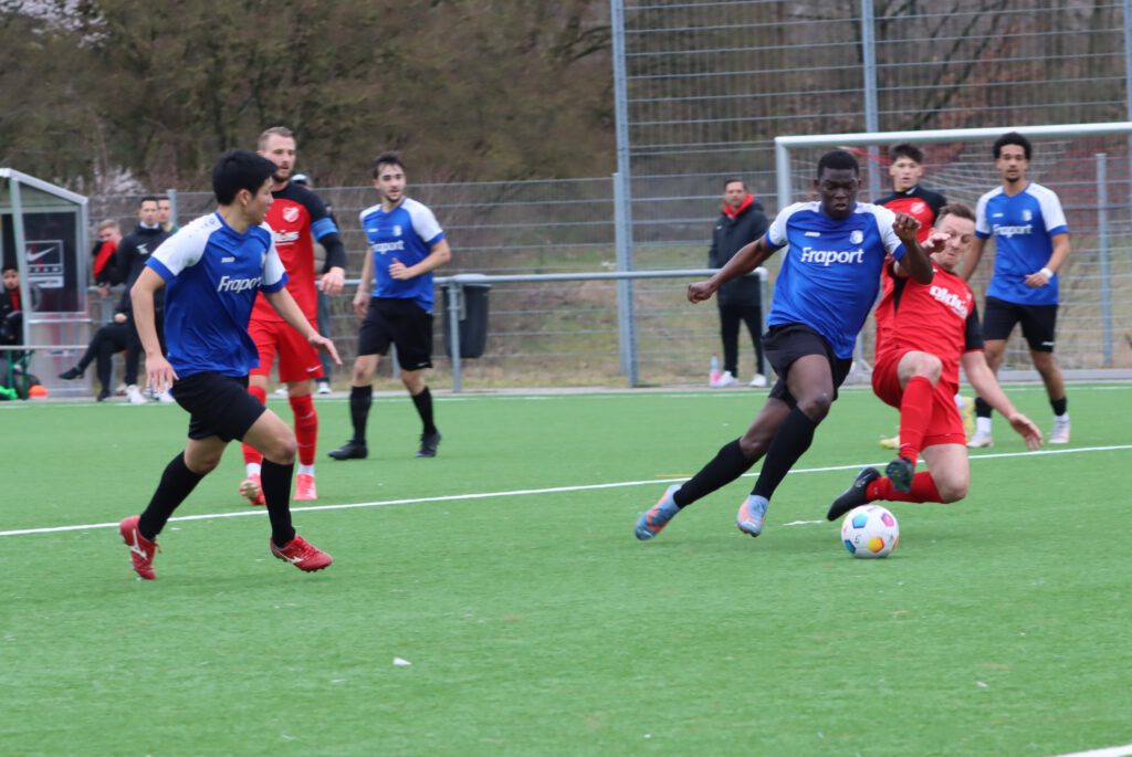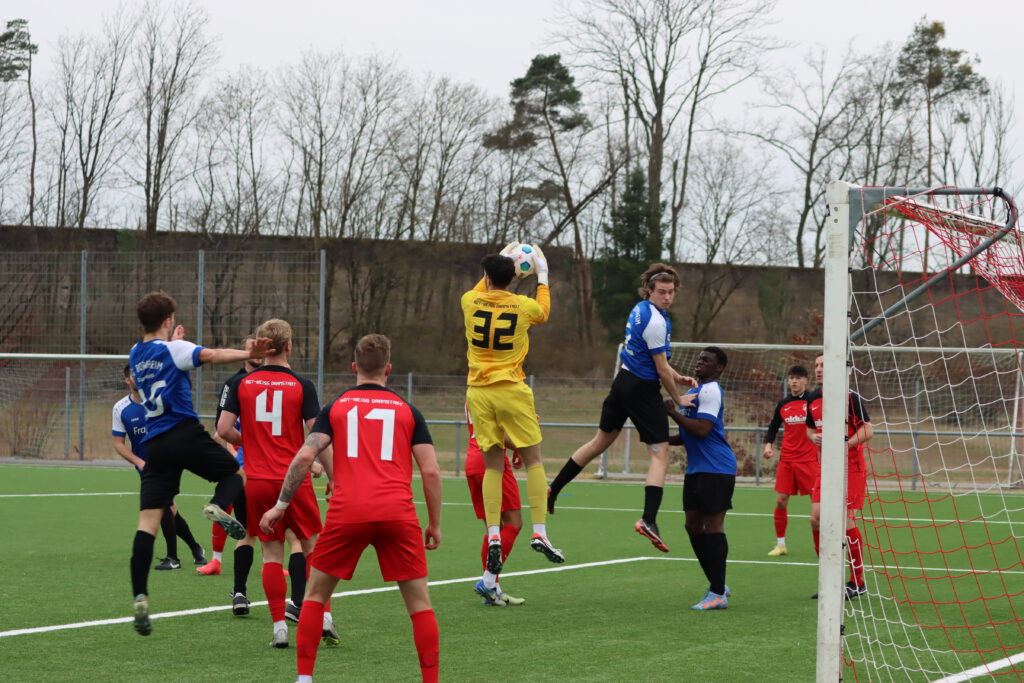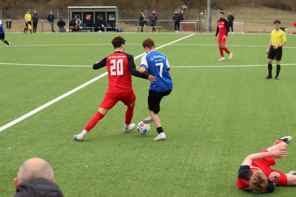 Es ist wie verhext in dieser Saison für die SG Bornheim, wie schon in so manchem Spiel kassierten die Frankfurter schnelle Tore und machten es sich dadurch schwer, in ihr Spiel zu finden und Punkte zu holen. Diesmal war es bei der SKV RW Darmstadt noch schlimmer, Felix Kalbfleisch nach einem Sonntagsschuss in der 1.Minute und Lauris Rafael Schneier Sanchez nach einer Hereingabe in der 3.Minute erzielten sehr früh die 2:0-Führung für die Gastgeber, denen man ihr Selbstvertrauen nach 5 Siegen in Folge anmerkte. Aber die Bornheimer brachen nicht ein, sie kamen besser ins Spiel und brachten die Gastgeber ein ums andere Mal ins Schwitzen, doch das gute Spiel endete am gegnerischen Strafraum. Die Bornheimer, bei denen mit Knell und Gure die beiden besten Torschützen der Vorbereitung fehlten, konnten sich keine klaren Torchancen erspielen. Im Gegenteil, in der 34.Minute erhöhte Maximilian Motzel auf 3:0 für die Darmstädter. Die erste Halbzeit endete mit einer gelb-roten Karte gegen den Darmstädter Marvin Vincent Deusser.