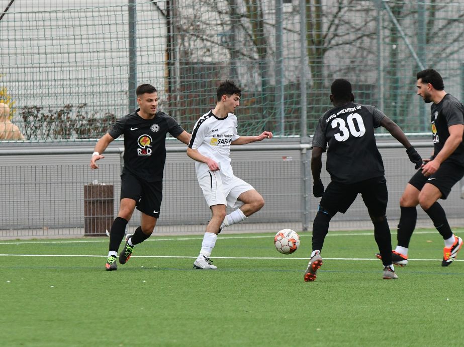 Der neue Griesheimer Trainer Ercüment Sahin, der den „Schleifern“ in den drei Auswärtspartien sieben Punkte garantiert hatte, brauchte sich diesmal nicht zwischen die Pfosten zu stellen, sondern konnte von der Seitenlinie aus dirigieren. Vorsorglich stand Sahin aber als Ersatztorhüter bereit. Sein Debüt im Kasten der Gastgeber gab der allseits erwartete japanische Schlussmann Mizuki Yamaki. Er musste gleich nach wenigen Sekunden hinter sich greifen, denn Khalil Jiab Boukraa brachte die Gäste in Führung (1.). Dann zeigte sich aber wie schon in den letzten Spielen der zum Offensivmann umfunktionierte Michael Ofosu in Torlaune. Erst traf der in der Hinrunde noch defensiver auftretende Spieler zum 1:1 (5.). Nach dem Ausgleich sorgte Ofosu sogar für die Führung der Spielvereinigung (13.).