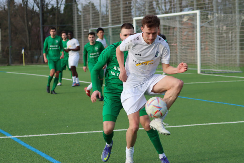 180 Zuschauer sahen ein zweikampfbetontes Match, in dem die Bornheimer bemüht, im letzten Drittel aber nicht konsequent genug waren. Nach 20 Minuten hatten die Gastgeber mehr vom Spiel, die besseren Gelegenheiten hatte aber Dortelweil. Die Gäste hatten mit Marvin Strenger die erste Chance, der Stürmer scheiterte aus fünf Metern am Bornheimer Torhüter Gianluca Colombo (12.). Auf Seiten der Hausherren stand Tim Stahl in der Anfangsformation, der erst in der Winterpause aus Dortelweil gekommen war.