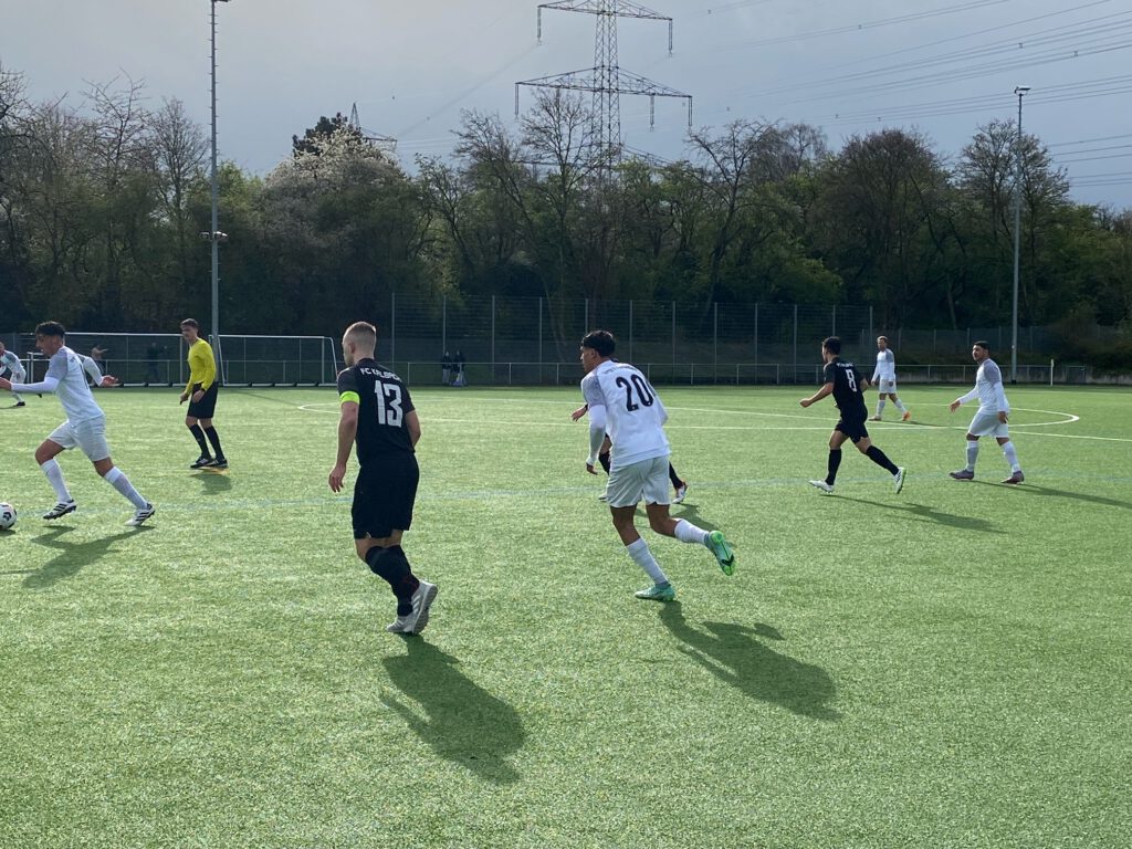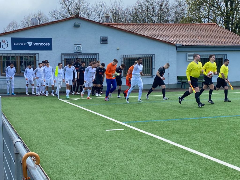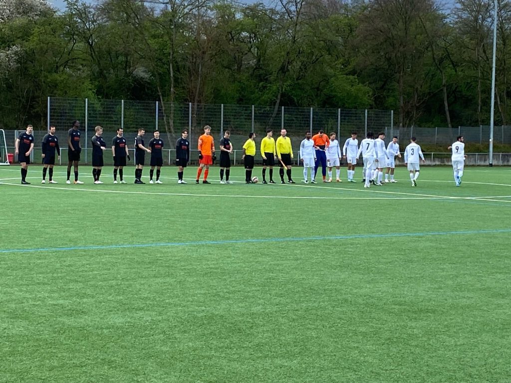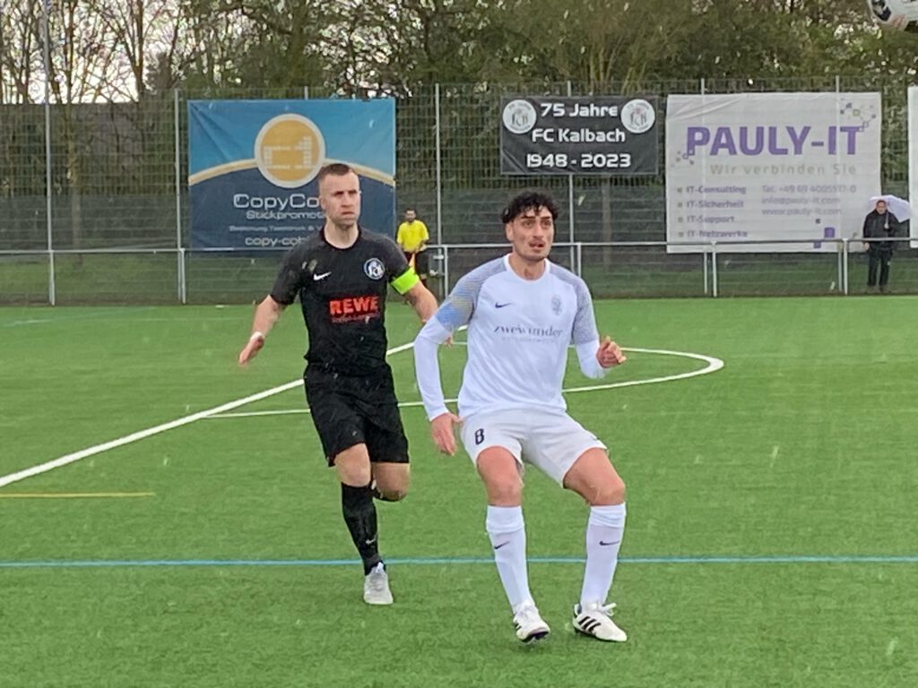 Viele waren gespannt auf das Spiel beider Mannschaften, waren der FC Kalbach mit 13 Punkten aus 5 Spielen und vier Siegen in Folge und die Spvgg. 03 Fechenheim mit 10 Punkten aus 4 Spielen doch die erfolgreichsten Mannschaften nach der Winterpause. Bei Aprilwetter mit Sonne, Regen und Wind entwickelte sich in der ersten Halbzeit ein Spiel mit wenigen Torchancen. Die Fechenheimer kamen besser ins Spiel und hatten in der 3.Minute eine gute Chance durch den in den letzten Spielen erfolgreichen Kaleab Eyassu, doch Kalbachs Torhüter Fabian Lanthaler konnte geschickt den Winkel verkürzen. In der 23.Minute kam Achraf Gara Ali frei zum Kopfball, traf den Ball aber nicht richtig. Kalbachs Trainer Aaz-Dine Zarioh forderte Mitte der ersten Halbzeit mehr Dynamik von seiner Mannschaft, doch Kalbach kam nicht richtig ins Spiel. Und in der Nachspielzeit der ersten Hälfte dann die Riesenchance für Fechenheim, nach einem zu kurzen Rückpass kam Mohamed Youssef frei vor Torwart Lanthaler an den Ball, schob diesen aber am Pfosten vorbei.