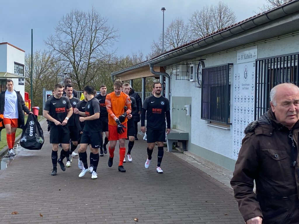 In der zweiten Halbzeit dann ein ganz anderes Bild, die vor der Pause noch so spielsicheren Fechenheimer kamen kaum noch ins Spiel und die Kalbacher dominierten die Partie. Nach einer Flanke von Moritz Uppenkamp in der 64.Minute konnte Achraf Gara Ali am langen Pfosten den Ball zum 1:0 mit dem Kopf in die Maschen drücken, sein 35.Saisontor. In der 71.Minute dann ein Missverständnis in der Fechenheimer Abwehr, ein Verteidiger köpfte den Ball vor dem fangbereiten Torhüter weg, aber direkt in die Beine von Aleksej Radulaski, der den Ball annahm und mit einem satten Schuss das 2.0 erzielte, der Ball sprang vom Innenpfosten ins Tor. Danach hatten die Kalbacher weitere Chancen, in der 73.Minute scheiterten Achraf Gara Ali mit einem Elfmeter und Aleksej Radulaski mit dem Nachschuss am großartig haltenden Torhüter Armin Buchholz, kurz danach traf Achraf Gara Ali nur den Innenpfosten und ein weiterer Schuss von Radulaski landete an der Querlatte. Von Fechenheim, die nur mit drei Ersatzspielern angereist waren, war in der zweiten Halbzeit nichts mehr zu sehen.