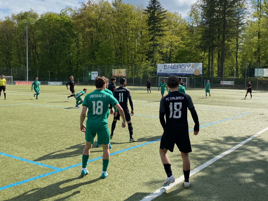 Die zweite Halbzeit war gerade 5 Minuten alt, als Oberrad nach zwei Ecken zum 2:1 kam. Milan Matejevic schlug von der linken Seite eine Flanke, die Masse Bell Bell in der Mitte mit dem Kopf zur Führung verlängerte, sein 18.Saisontor in der 50.Minute. Die Kalbacher stemmten sich gegen die Niederlage, die einen Rückschlag im Kampf um den Aufstieg bedeuten würde, und kamen in der 65.Minute zur größten Ausgleichschance, doch ein Schuss von Achraf Gara Ali aus 5 Metern ging weit über das Tor. Das Spiel war sowohl auf dem Platz als auch an den Seitenlinien hitzig und in der 74.Minute kam es zur zweiten Rudelbildung im Spiel, diesmal griff der Schiedsrichter hart durch und zeigte Oberrads Armin Gama und Kalbachs Gurkaraman Singh die rote Karte. Unschön im Anschluss noch Szenen bei den Zuschauern, die den vom Platz verwiesenen Kalbacher Spieler bedrängten, was sich der Schiedsrichter im Anschluss auch notierte. Die Kalbacher schafften es in der Restspielzeit inklusive von 7 Minuten Nachspielzeit nicht mehr, zum Ausgleich zu kommen, und verloren damit wichtige Punkte im Kampf um den Aufstieg. Die Oberräder zeigten nach dem Pokalaus eine kämpferische Leistung und rehabilitierten sich.